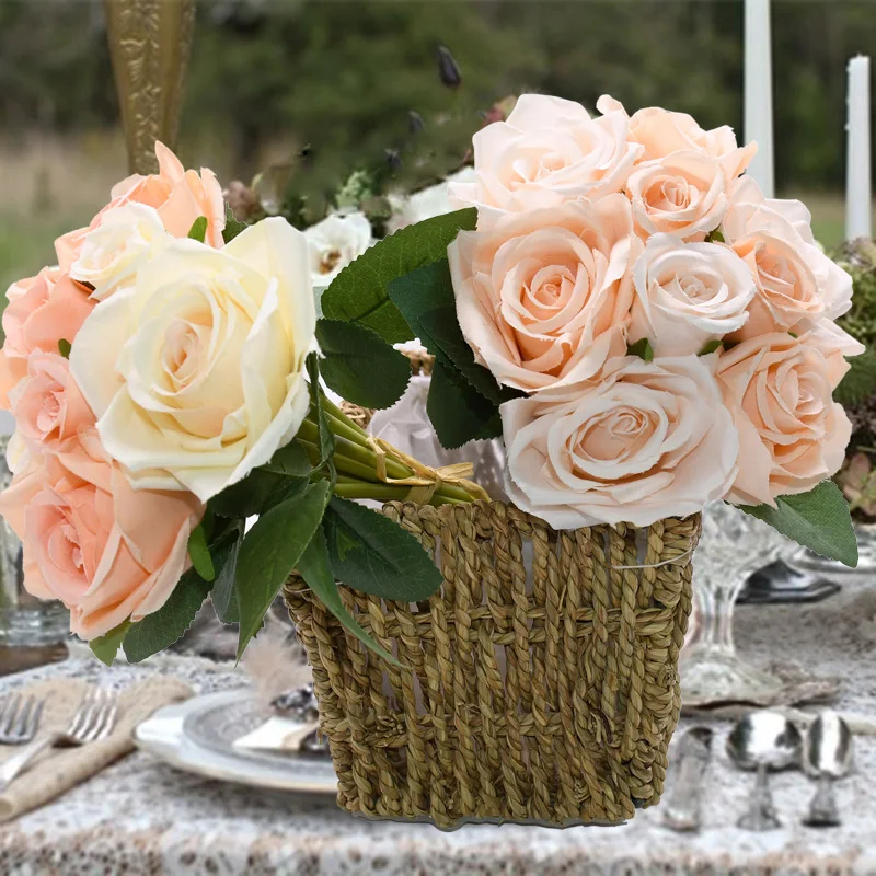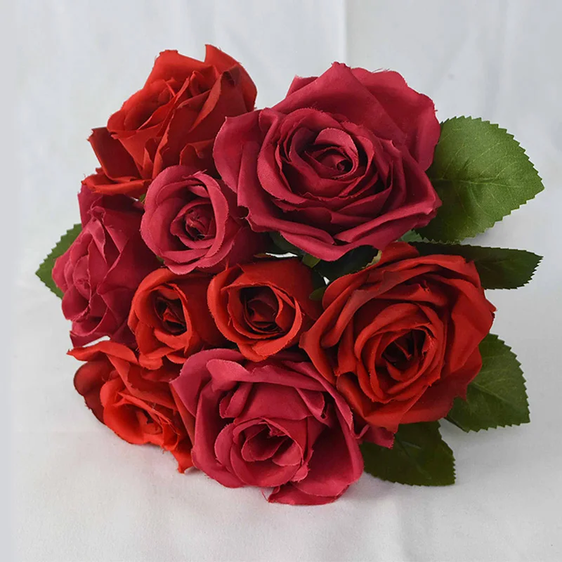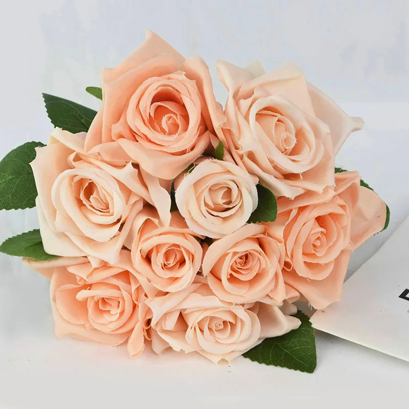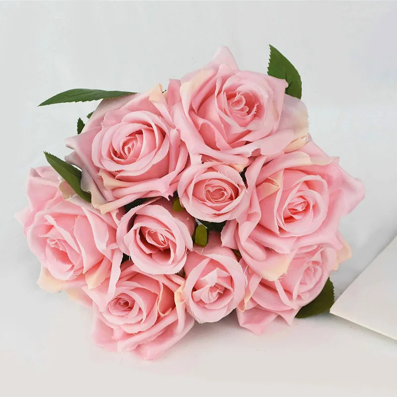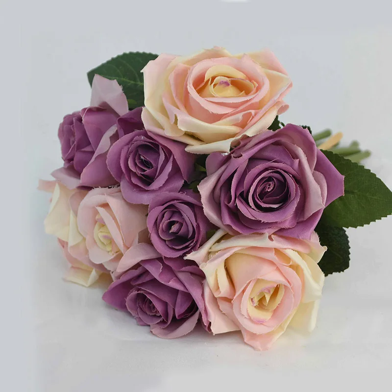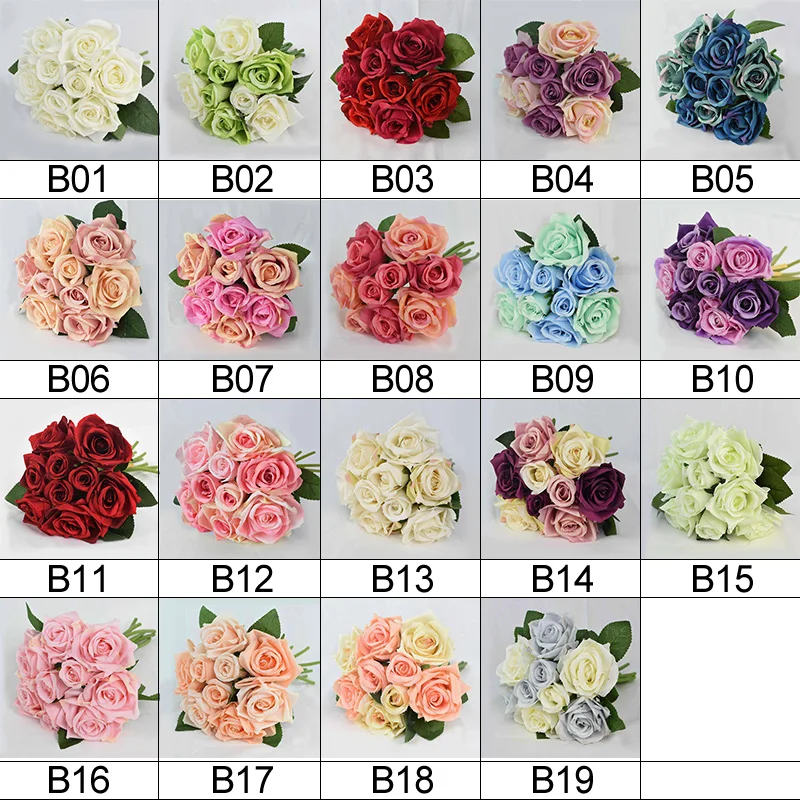 Букеты из шелковой розы 9 головок, искусственные цветы на голову, Свадебный букет невесты, для украшения дома, сада, дня рождения