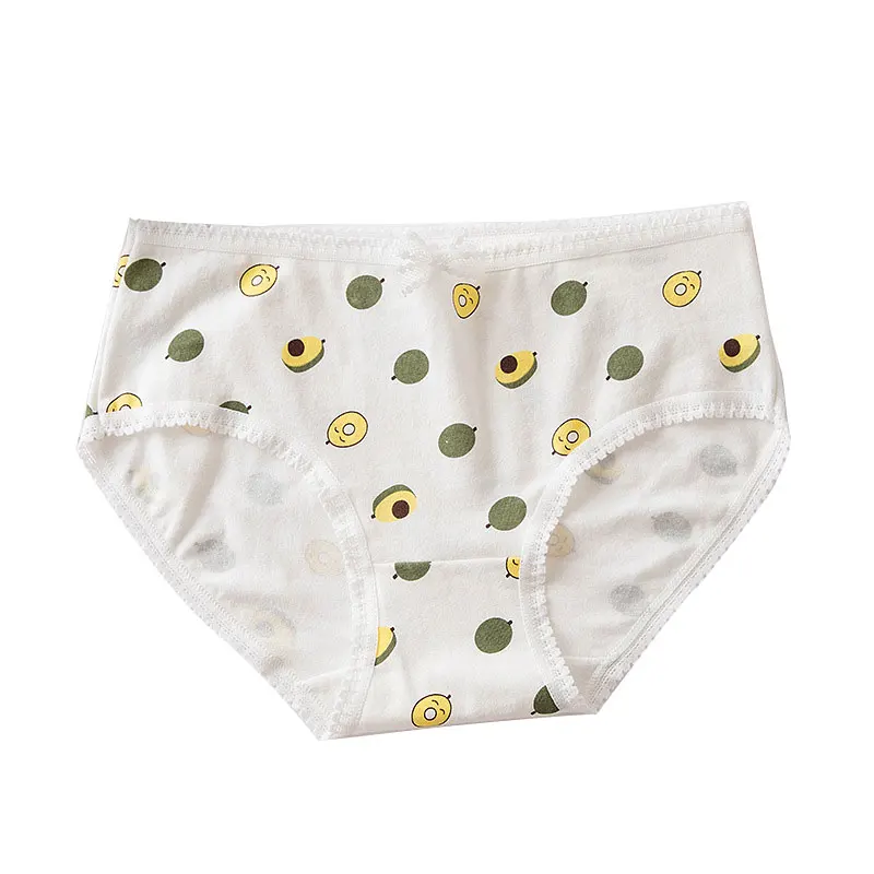 Женские хлопковые трусики с принтом авокадо, белыезеленые трусики со средней талией и треугольным низом