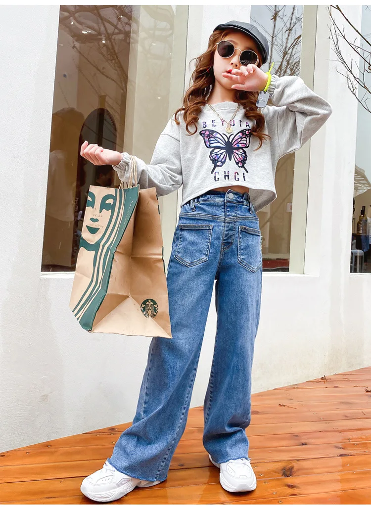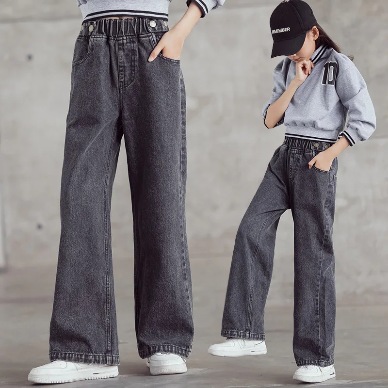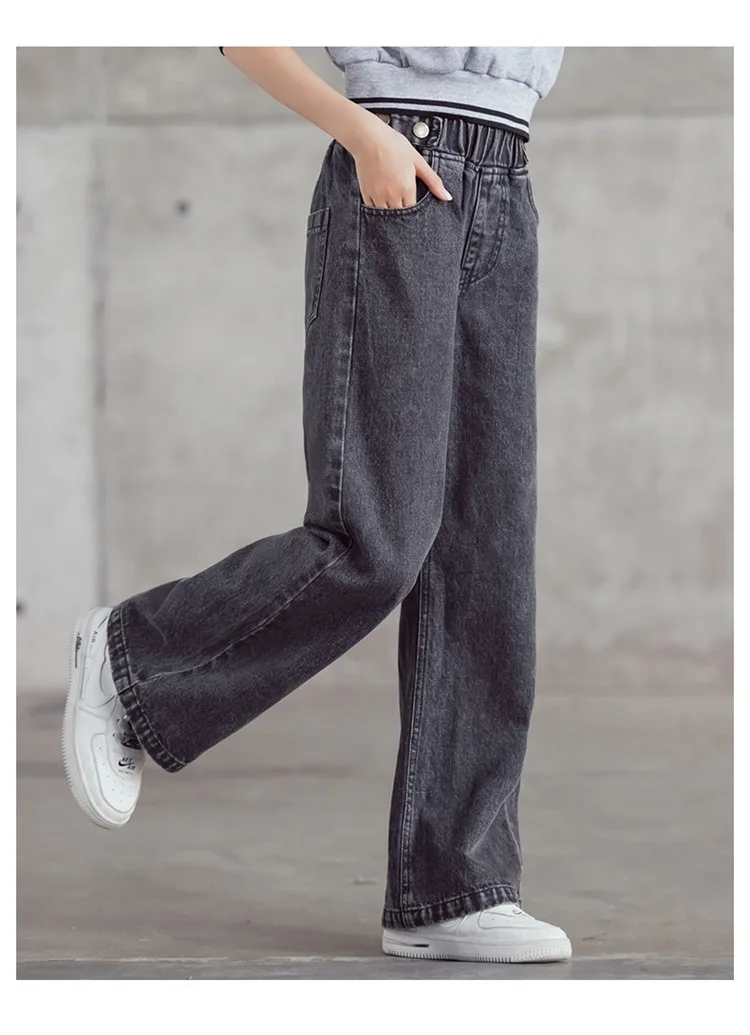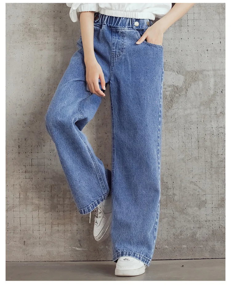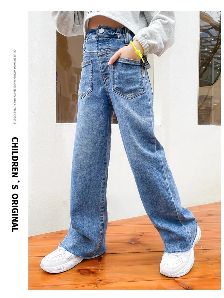 Джинсы для девочек-подростков весна 2022, детские джинсовые штаны повседневные джинсы для девочек 6, 8, 10, 12, 14 лет, детские брюки с эластичной резинкой на талии