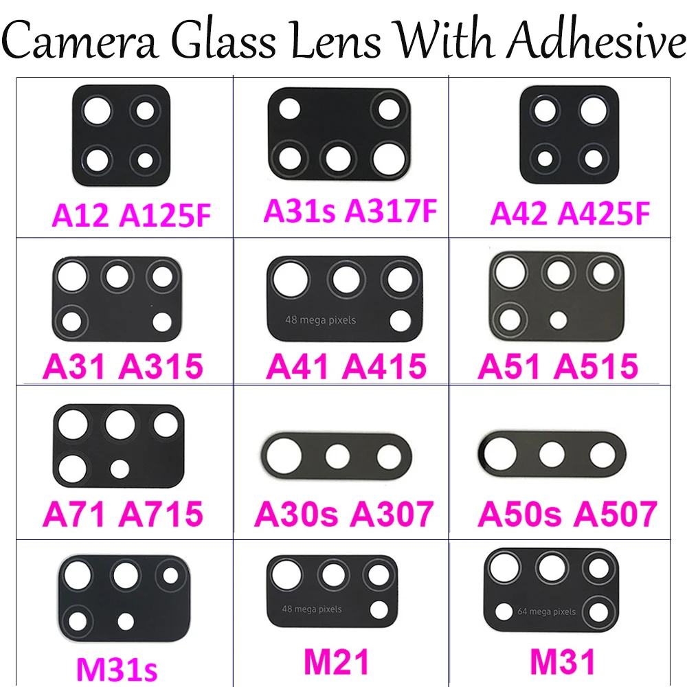 Стеклянные линзы для задней камеры Samsung Galaxy M51 A21 A30s A50s A31s A12 A42 A21S A51 A71 A31 A41 M21 M31s с клеем, 2 шт.