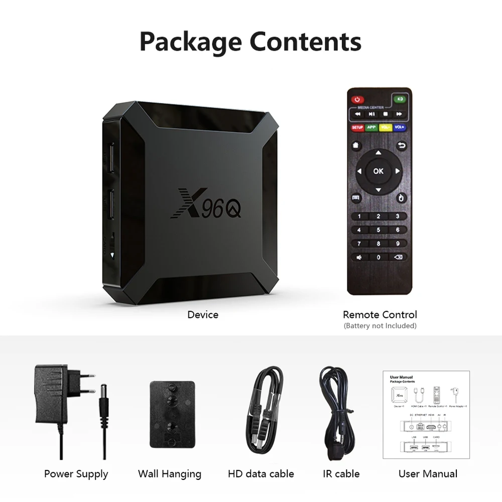 1х приставка, 1 пульт дистанционного управления, 1X адаптер, 1X HDMI кабель, 1X руководство на английском языке