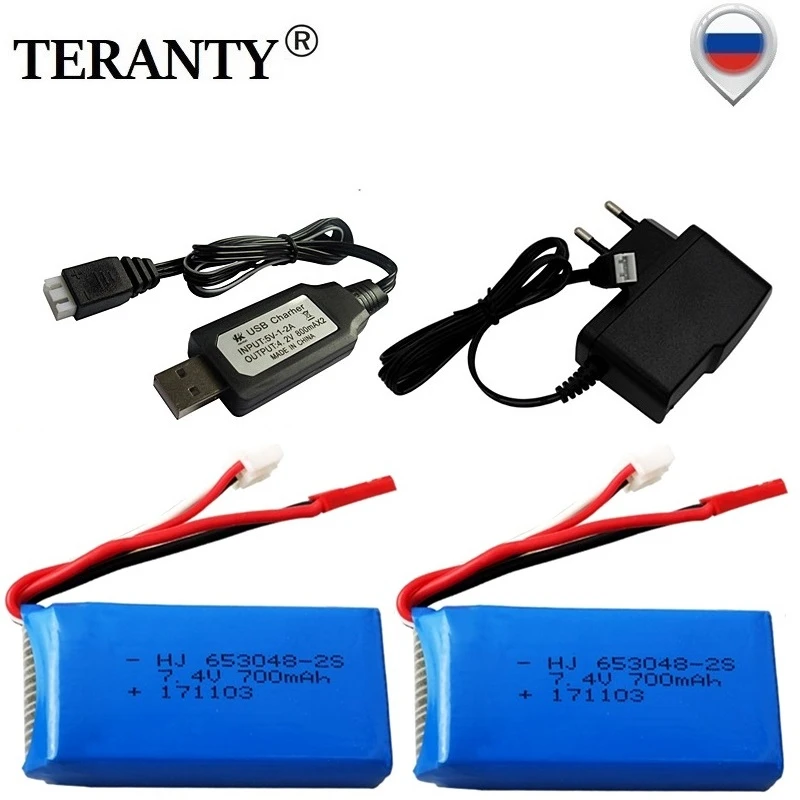 7,4 в 700 мАч 653048 литий-полимерный аккумулятор и Зарядное устройство для FT007 радиоуправляемые игрушечные лодки катер для Syma F1 FX059 для дистанционно управляемого летательного аппарата 2s 7,4 V батарея