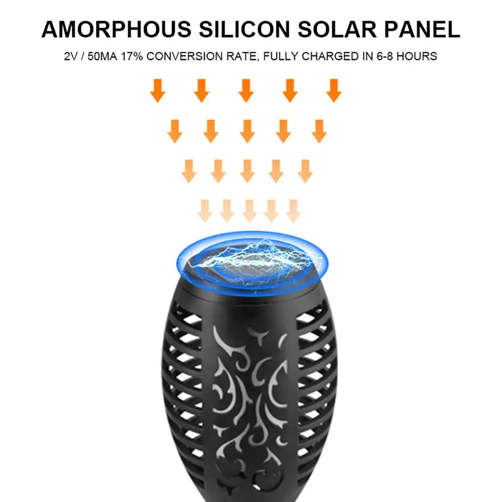 1. Украшение и освещение: садовый свет с ретро-формой пламени и теплым желтым световым эффектом для хорошего украшения и освещения вашего двора и дороги.2. Длительный срок службы батареи: высококачественные солнечные панели и супер коэффициент конверсии обеспечивают долгий срок службы батареи.3. Высококачественный светодиод: с использованием высококачественного светодиода солнечный свет отличается высокой яркостью и эффективным энергосбережением, продлевая время освещения и длительный срок службы.4. Долгое время использования: Встроенный высококачественный никель-металл-гидридный аккумулятор, свет имеет сильный Срок службы батареи. Зарядка 6-8 часов, ее можно использовать в течение 8-10 часов при полной зарядке.5. Высокопрочный ABS Материал: с уровнем защиты IP65, свет имеет защиту от дождя и молнии, Обеспечивая непрерывную мощность в дождливые дни для нормальной работы.
