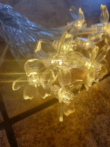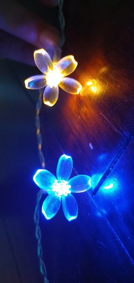 Точно соответствует описанию товара. Все светодиодные лампы работают. Цветы изготовлены из силиконового пластика, что делает их гибкими и маловероятными. Шнур легко подключить и обернуть. Свет яркий, и продавец хорошо общался. Я бы купил этот товар снова.