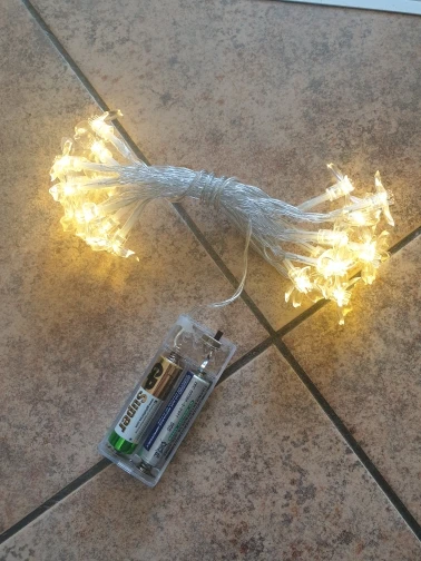 красивая гирлянда, теплый жёлтый свет. работает на 3-х батарейках АА, в комплект не входят. все целое. отправили быстро. рекомендую продавца.