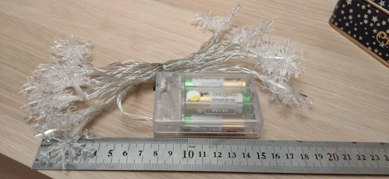 Работает от трех пальчиковых батареек,красивая гирлянда,доставка около месяца в спб.