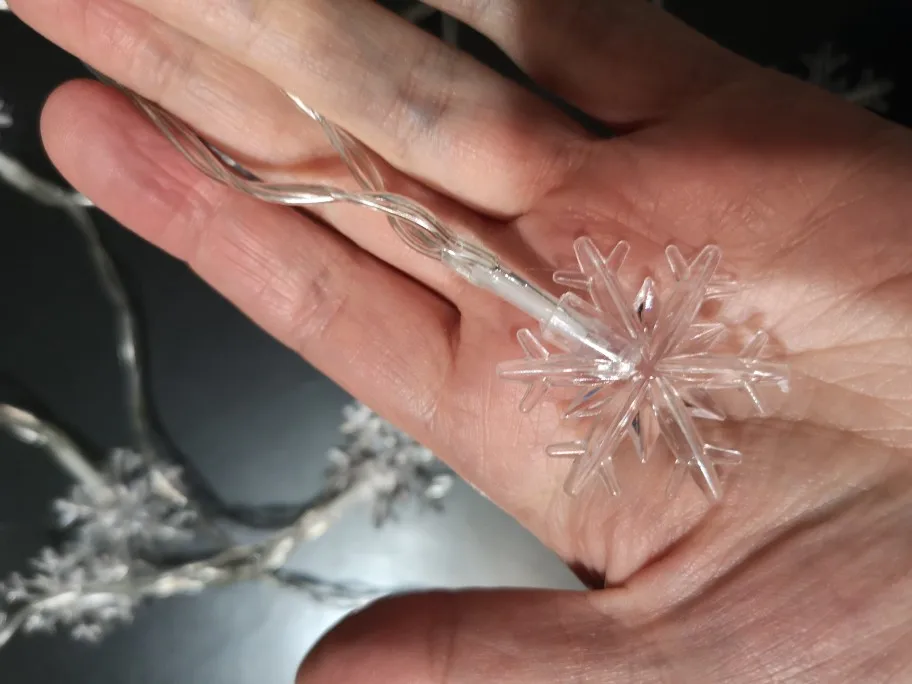 снежинки очень маленькие. зарядка от usb работает хорошо. гирлянда качественная. спасибо продавцу.