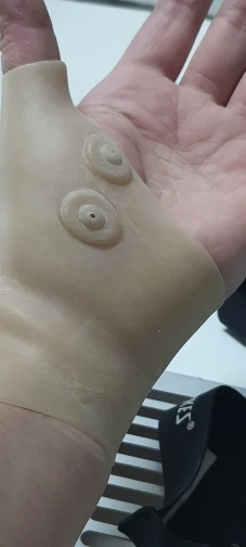 Материал: силиконЦвет: тон кожиОписание:2. Подушка помогает при артрите, синдроме запястного туннеля, мышечных болях и спазмах.4. Бесшовный крой, без следов, с хорошей формой руки.Посылка включает в себя: