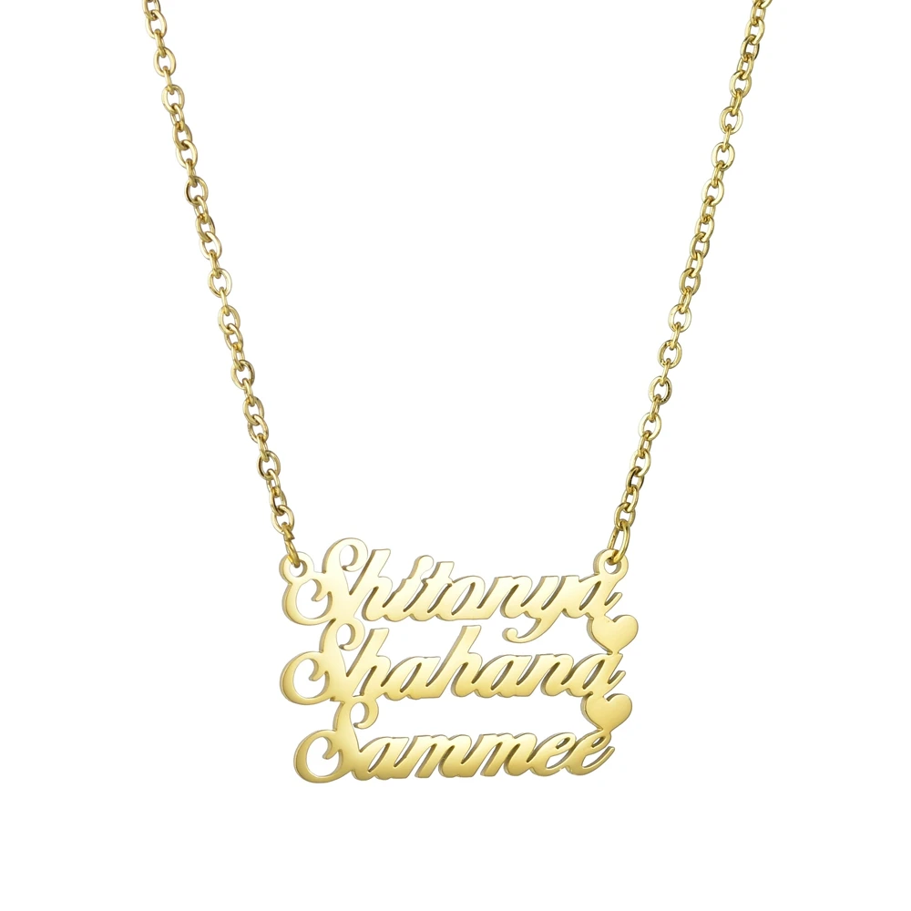 Ожерелье Goxijite с 3 именами для женщин и мужчин, индивидуальное ожерелье с несколькими сердечками, ожерелья, ювелирные изделия, подарок для семьи