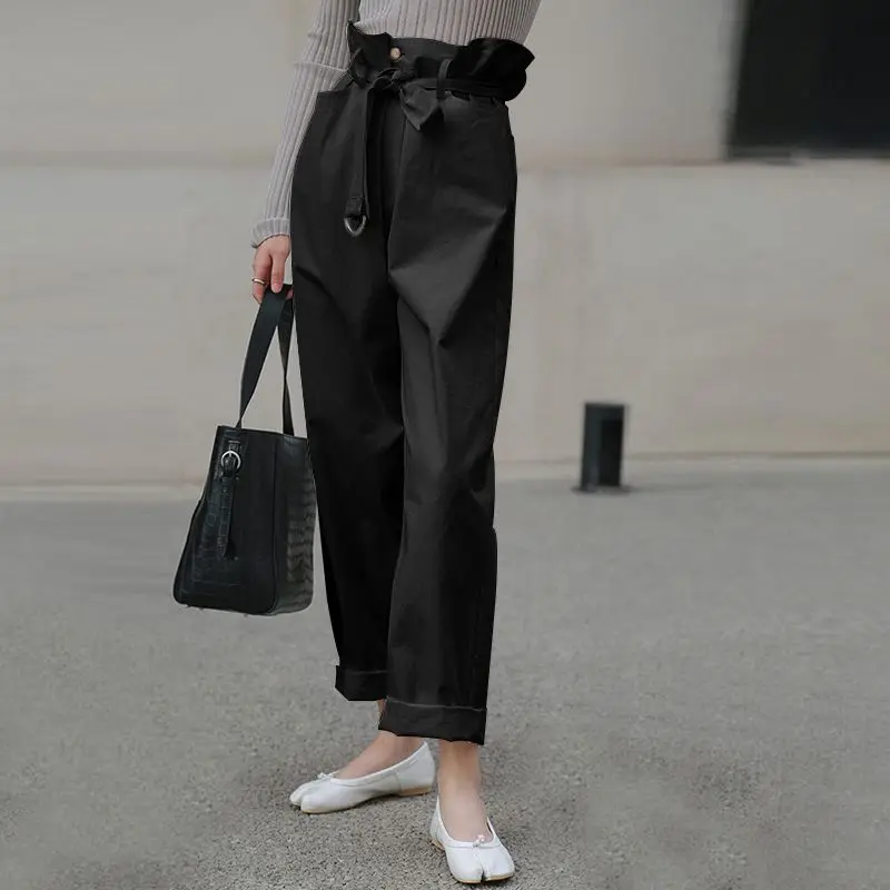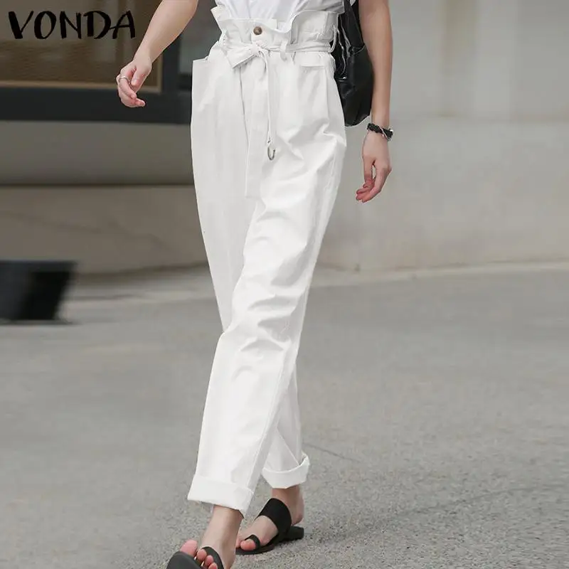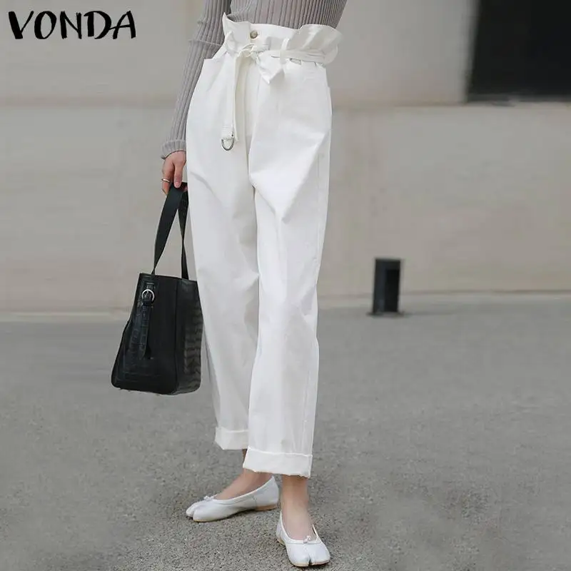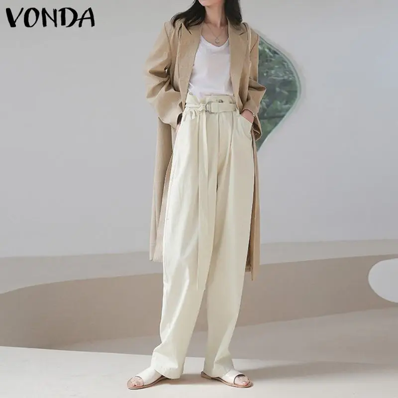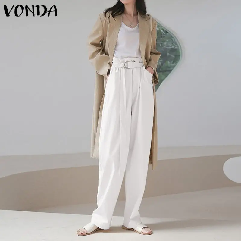 Брюки VONDA женские с поясом, модные однотонные Осенние повседневные свободные штаны на молнии, брюки с высокой эластичной талией, Палаццо с мятой