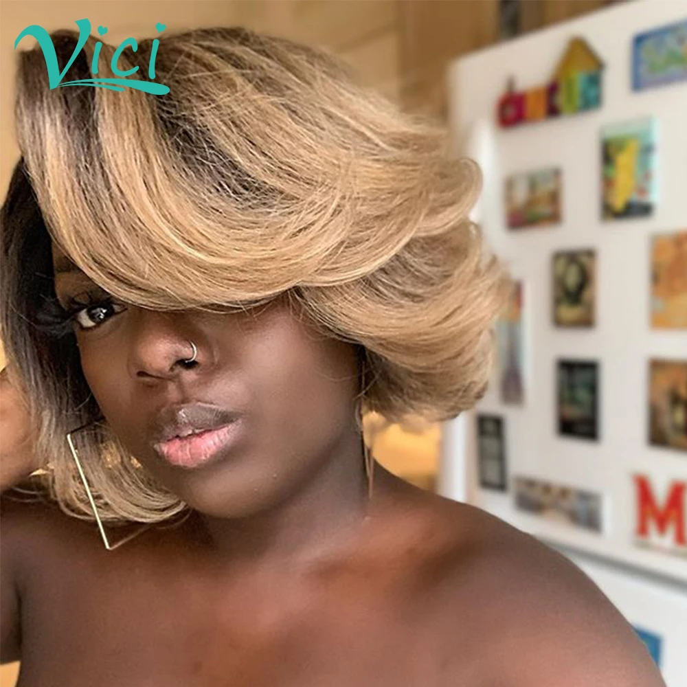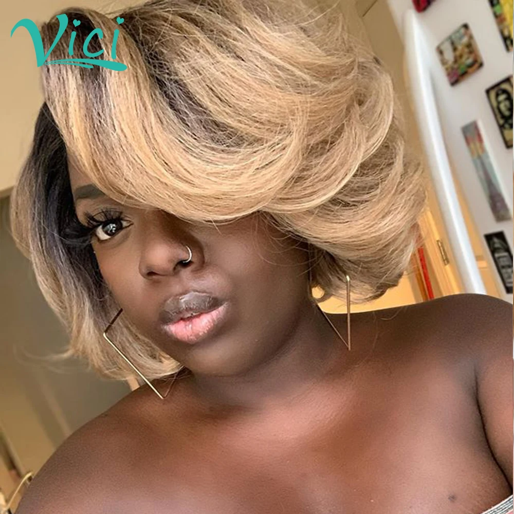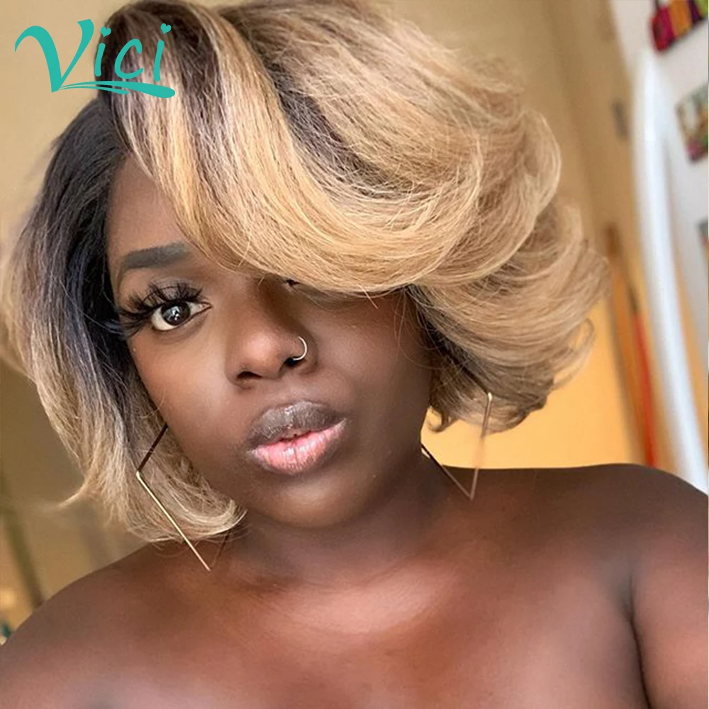 1b27 медовый блонд парик из человеческих волос для чернокожих женщин, Цветные Короткие парики из человеческих волос, предварительно выщипанные отбеленные узлы