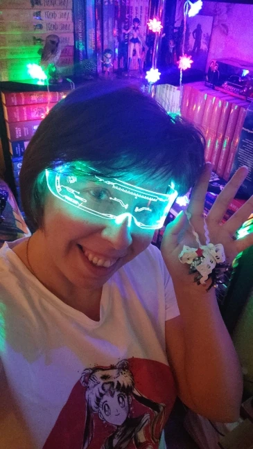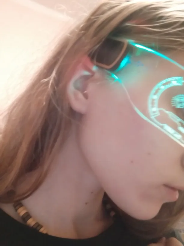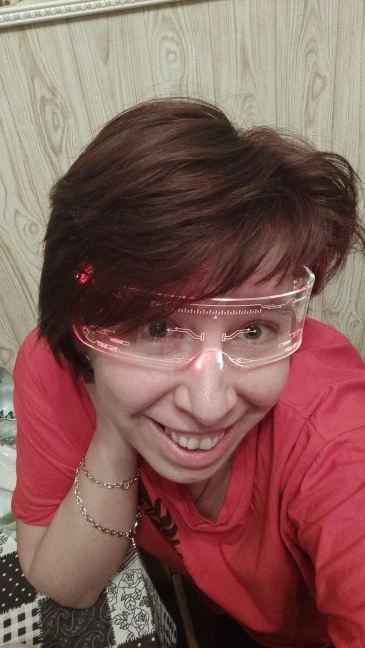 Очки крутые! Классные режимы, плавные переходы из одного оттенка в другой, выглядят потрясающе. Пришли в целости и сохранности, но в комплекте нет батареек - нужны таблеточки круглые. Подсветка от двух независимых источников, у каждого из них своя собственная батарейка и кнопочка. Есть режим красный мигающий как при опасности. Есть режим простой подсветки. Из минусов - больно натирает ухо, если носить дольше 5 минут, довольно тяжелые. Но это не проблема для меня, так как они нужны для фотосессии. Если хотите включить их в свой костюм - надо придумать что-то и подкладывать мягкое. Берите и не пожалеете, даже моя кошка в восторге) Попробую еще прикрепить видео