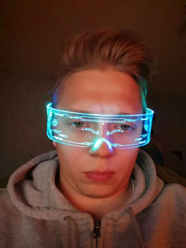 Очки понравились, лёгкие и много режимов, можно поставить нужный цвет, чтобы он не менялся. Заказывал две штуки, одни были погнуты при перевозке, пришлось выправлять феном. В остальном всё отлично, для фоточек самое то. Спасибо продавцу)