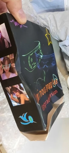 забавные очки, в комплекте нет батареек. доехали быстро, светятся, как положено.