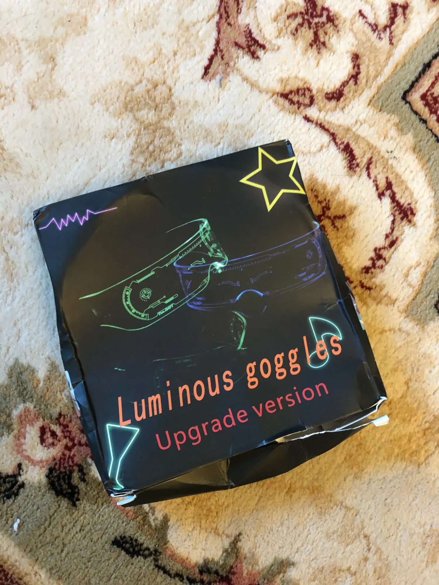 Очки очень крутые. Батарейки в комплекте не идут, таможня не пропустит. Светятся отлично. Есть 3 режима свечения: медленно мигающий красный, быстро мигающий красный и переливающийся во всех цветах.