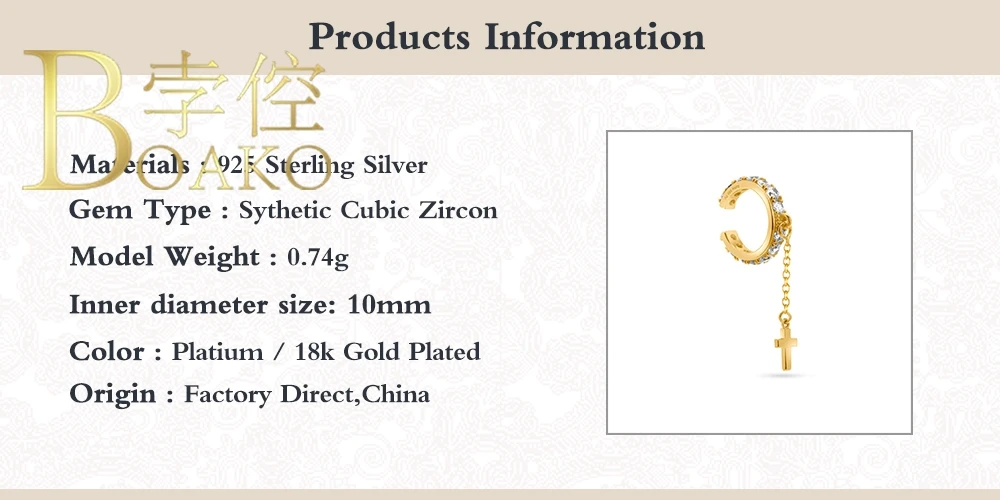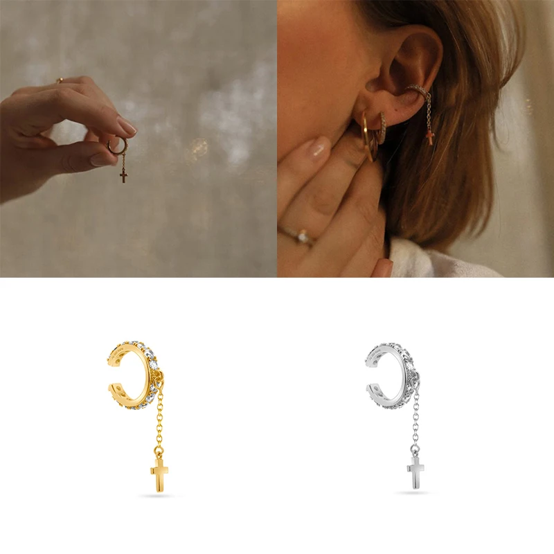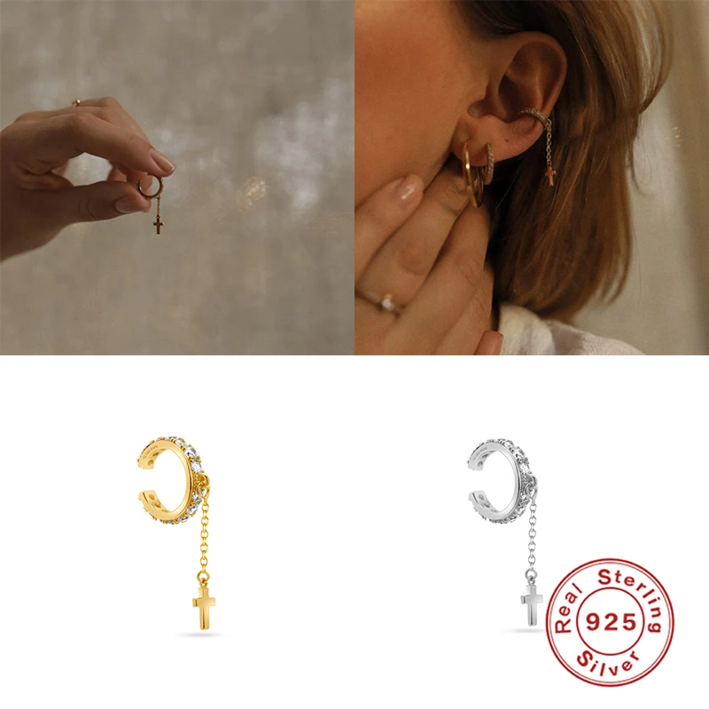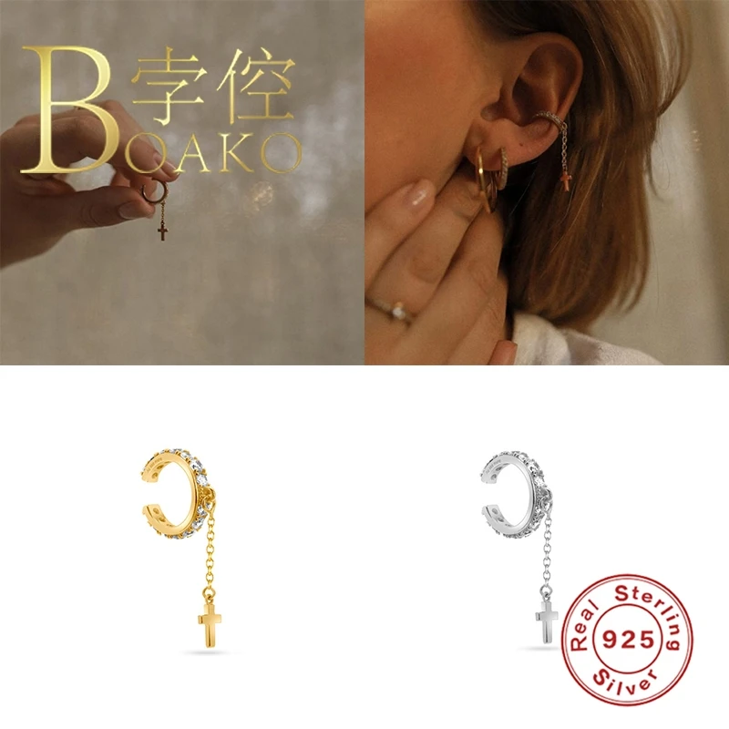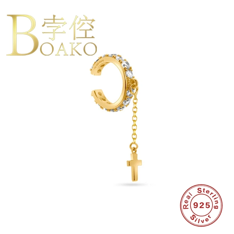 Женские серьги-пирсинг BOAKO, модные серьги из стерлингового серебра 925 пробы с цирконием и крестом, ювелирные изделия из серебра/золота