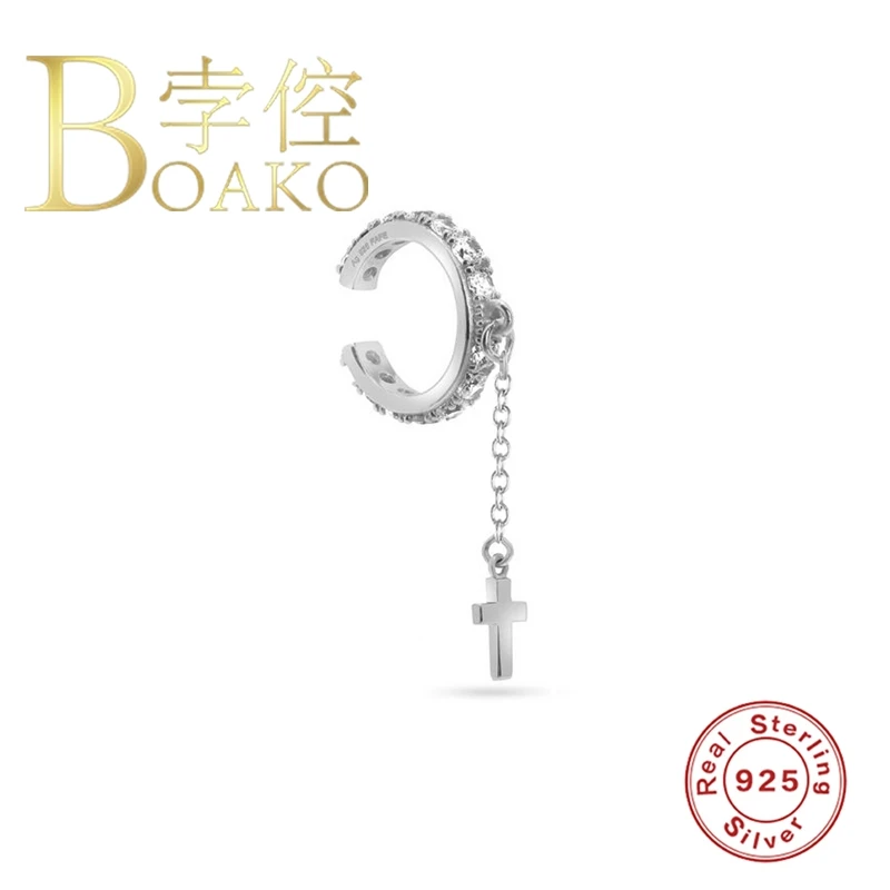 Женские серьги-пирсинг BOAKO, модные серьги из стерлингового серебра 925 пробы с цирконием и крестом, ювелирные изделия из серебразолота