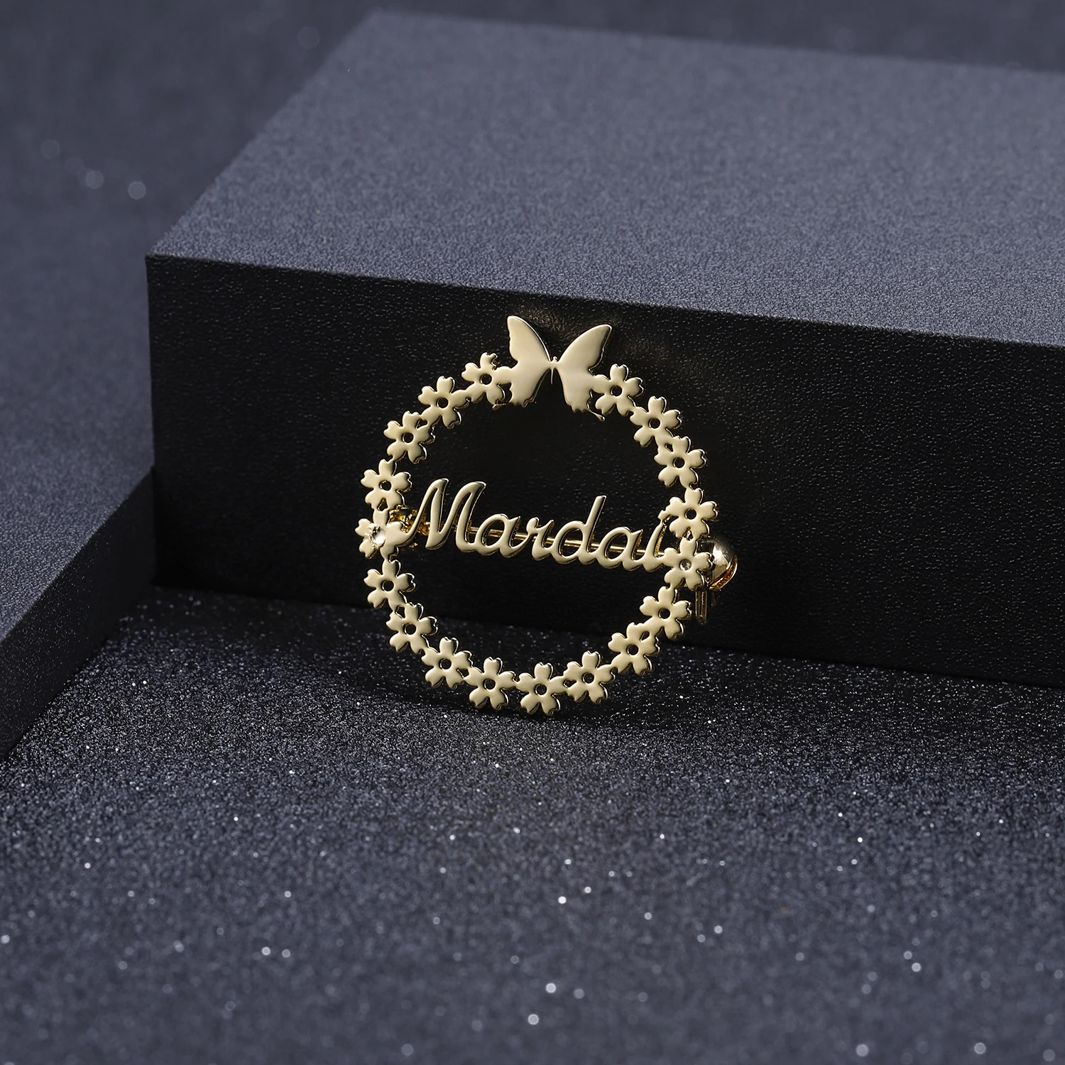 Брошь с именем бабочки на заказ, булавка с именем на заказ, искусственное золото, имена из нержавеющей стали, ювелирные изделия для женщин и мужчин, подарок