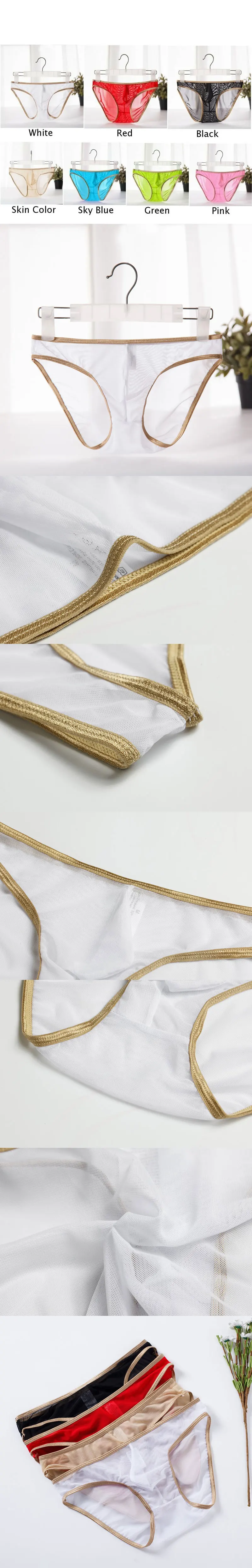 Мужские сексуальные прозрачные шелковые трусы, сетчатые женские эластичные бесшовные трусики, стринги, нижнее белье, черные, зеленые, розовые, красные, белые