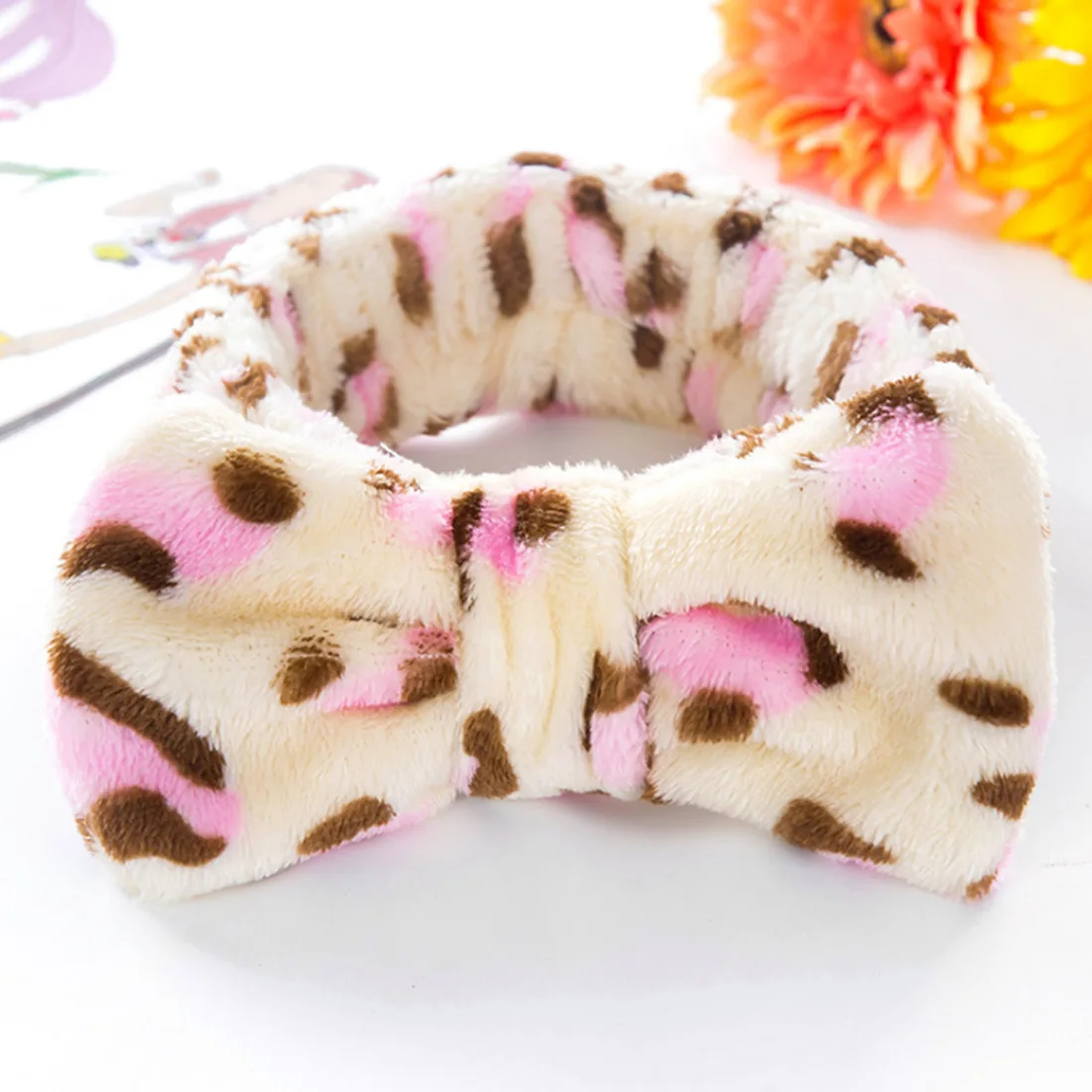Повязка на голову женская, мягкая, кораллового цвета, флисовая, плюшевый кролик с ушами