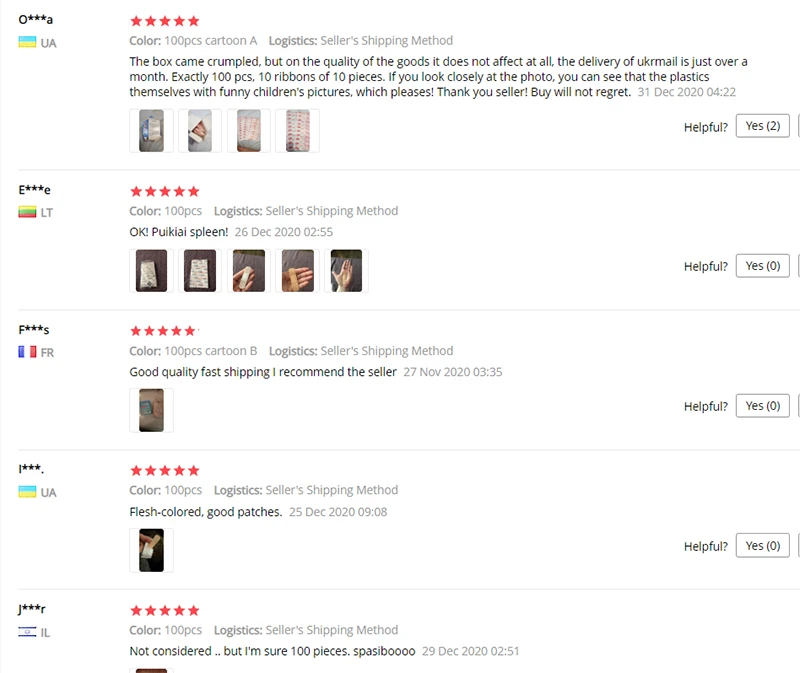 Посылка почти не отслеживалась, уже думала что потерялась в пути. Но в итоге пришла. Коробка мятая но пластыри целы. Доставка заняла 1,5 месяца до Казани. Пластыри не такие как на картинке упаковки, не с круглыми концами. Но не страшно. В упаковке действительно 100 штук. Покупала за 155₽. В Аптеке за эту цену только штук 40 можно купить.