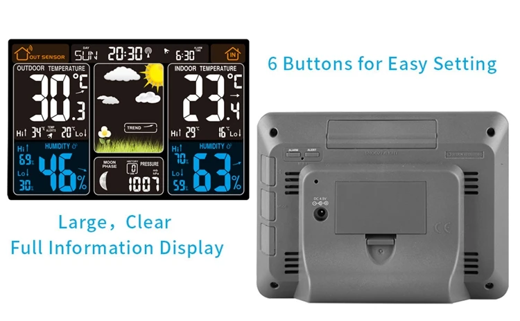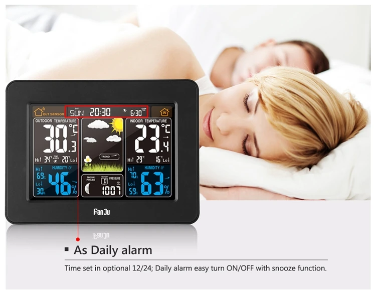 Беспроводная метеостанция с цветным ЖК дисплеем, измеритель температуры и влажности, барометр, Настольный будильник, фазы Луны, для прогноза погоды
