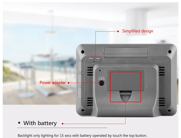 Функция автоматического синхронизации WWVB/DCF/MSF.Будильник, функция повтора сигнала.Время (12ч/24ч), отображение даты и дня недели.Дисплей фаз Луны 12 месяцев.7 прогнозов погоды (солнечная, облачная, облачная, светильник Кая дождь, сильный дождь, светильник снег, сильный снег) и погодных трендов.Отображение высочайшей/низкой температуры для внутреннего/наружного дня, отображение высочайшей/низкой влажности для внутреннего/наружного дня.Отображение температуры и тренда-.В помещении: 0 ° C ~ 50 ° C (32 ° F ~ 122 ° F).Вне помещения: -20 ° C ~ 60 ° C (-4 ° F ~ 140 ° F).Отображение влажности и изменения тренда.Внутри/снаружи: 20% RH ~ 95% RH.Барометрический дисплей (Тестирование за последние 12 часов).600 гПа/Мб ~ 1100 гПа/МБ (17,72 дюйма рт. Ст. ~ 32,50 дюйма рт. Ст. И 450,0 мм рт. Ст. ~ 825,0 мм рт. Ст.).Функция сигнализации температуры вне помещения и точки заморозки.Подсветка.Источник питания постоянного тока: подсветка-Уровень 3 (подсвечивается/слабо освещается/не горит).Питание от батареек: горит в течение 15 секунд.Может быть подключен к стоячему беспроводному наружному датчику (433,92 МГц RF Чувствительная частота, диапазон чувствительности 60 м/100фт, водонепроницаемый).Питание: Хост 2 × "АА" аккумулятор/DC 4,5 V 150MA питание; Наружный датчик 2 × "АА" батарейка. Характеристики:Размер упаковки: 17,5*8*13,5 смВес посылка: 615 г