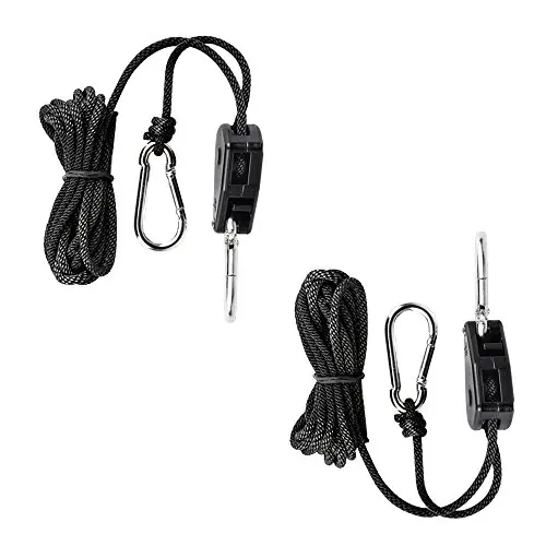 Идеально подходит для подвесных отражателей, высоких креплений, угольных фильтров и вентиляционного оборудования. Прикрепите зажим для карабина, чтобы закрепить предмет. Вытяните свободный конец веревки до достижения желаемой высоты.