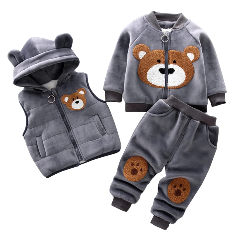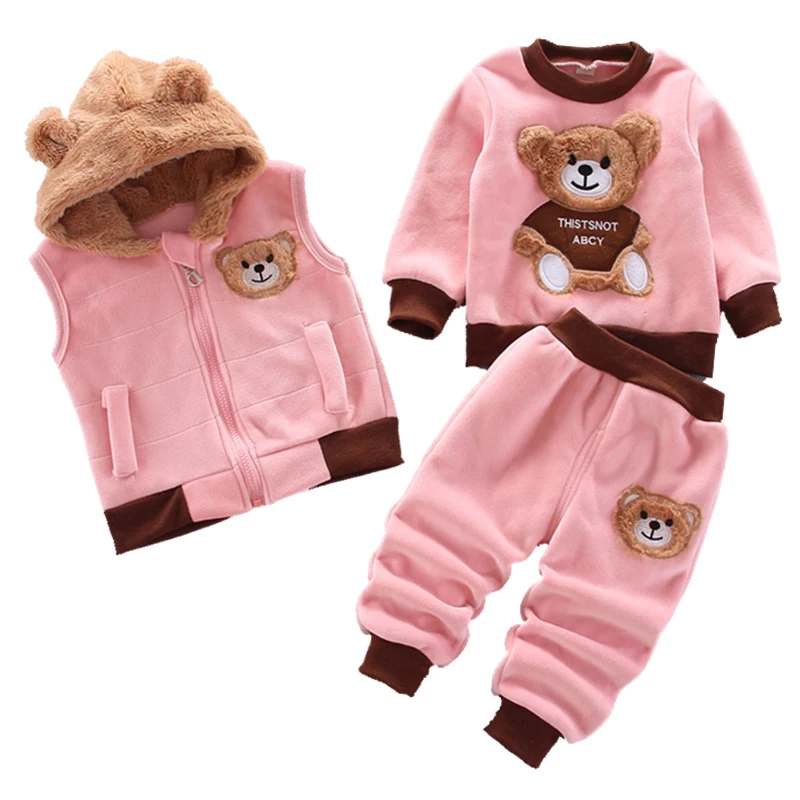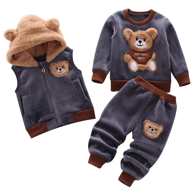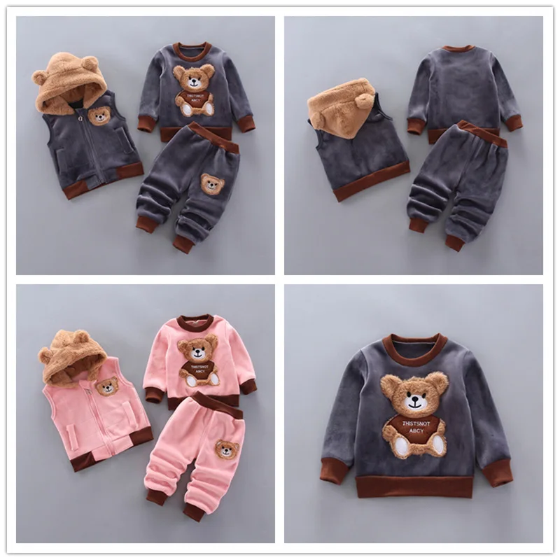 Детский зимний плюшевый костюм с длинным рукавом, новинка 2021, детский утепленный костюм из 3 предметов для мальчиков и девочек с мультяшными животными и длинными рукавами