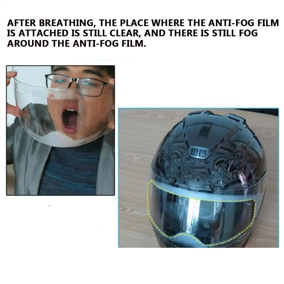 Инструкция по применению:1. С помощью инструмента очистите стекло шлема и снимите защитный слой.2. Наклейте противотуманную пленку с внутренней стороны шлема.3. Прижмите противотуманную пленку на стекло и аккуратно прижмите со среднего края.4. Отделка.