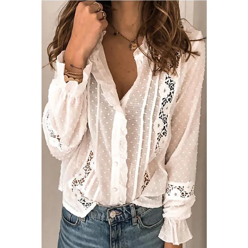 Блузка женская с оборками, пикантный топ в стиле бохо с V-образным вырезом, с расклешенным длинным рукавом, Офисная Свободная рубашка, весна-осень 2020