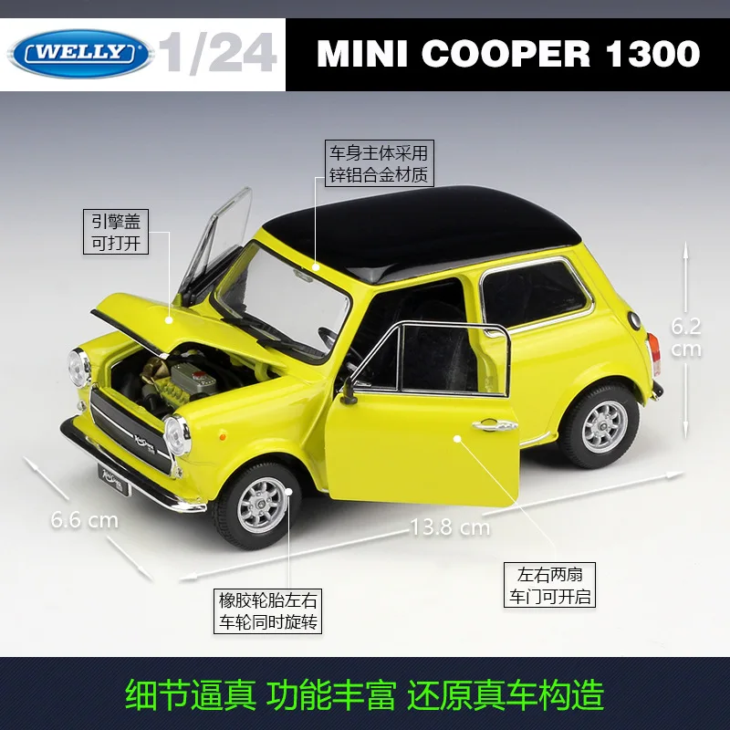 WELLY 1:24 MINI COOPER 1300 Красный автомобиль, спортивный автомобиль, имитация модели автомобиля из сплава, поделки, украшение, коллекция игрушек, инструменты, подарок