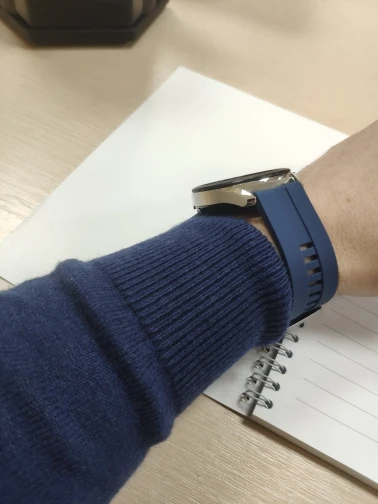 Приятный на ощупь, но совсем не подходит по цвету к черным часам