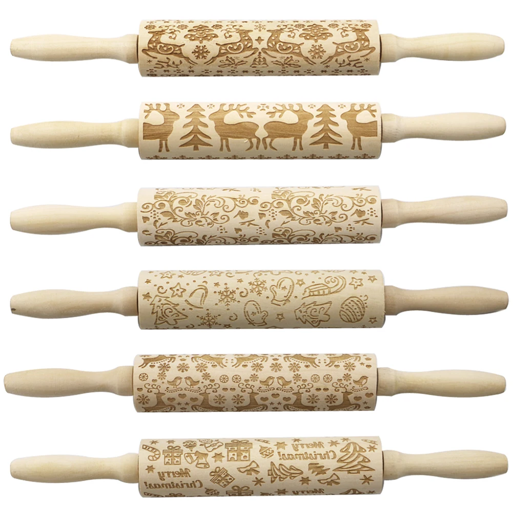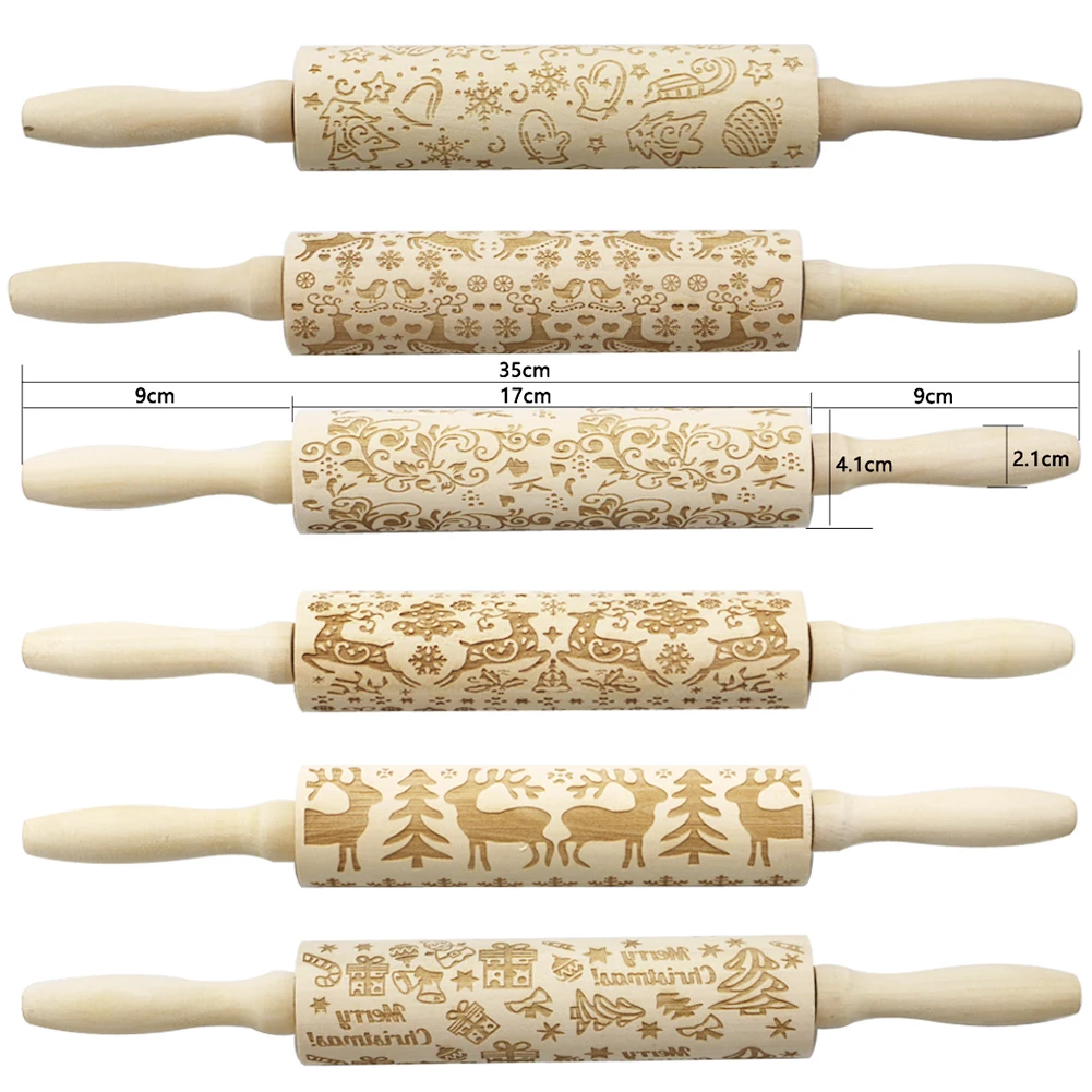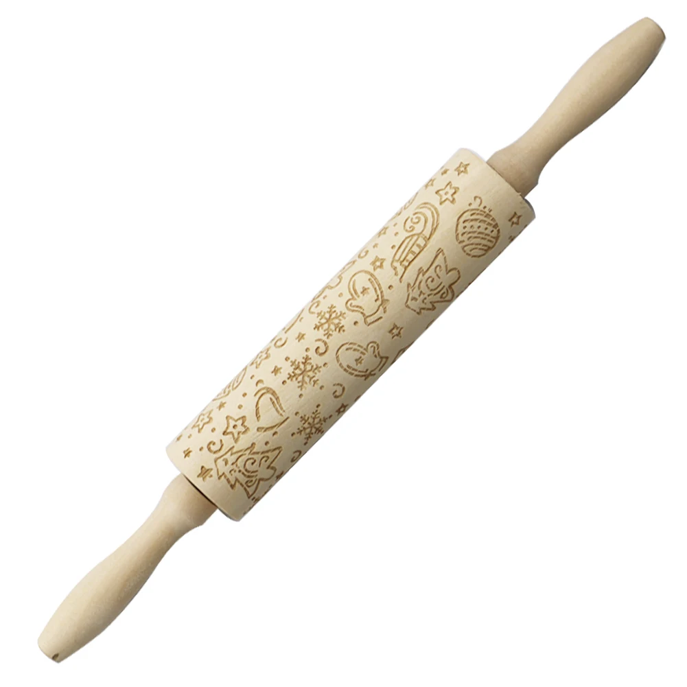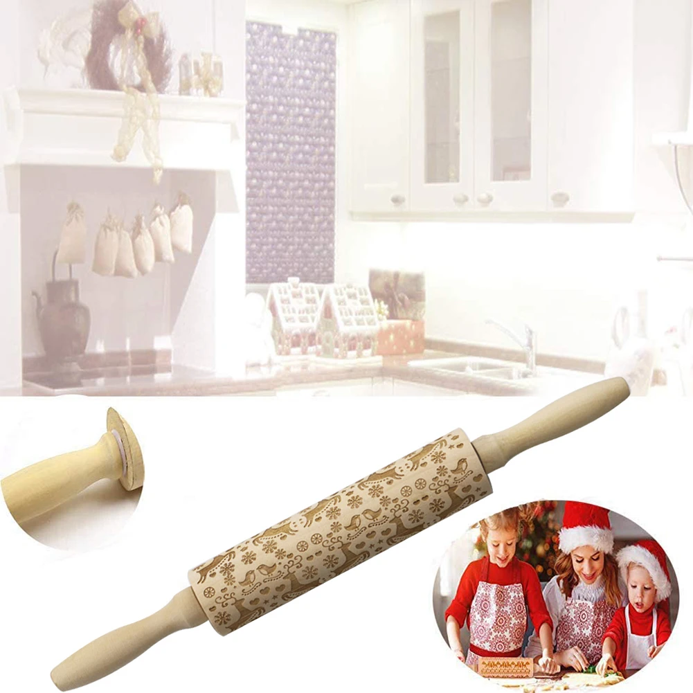 Рождественский принт лося Скалка деревянная лазерная гравировка тиснение ролик делая торт пирог лапша Печенье Тесто деревянные палочки кухонные инструменты
