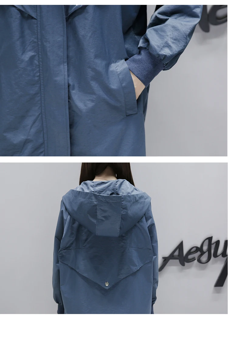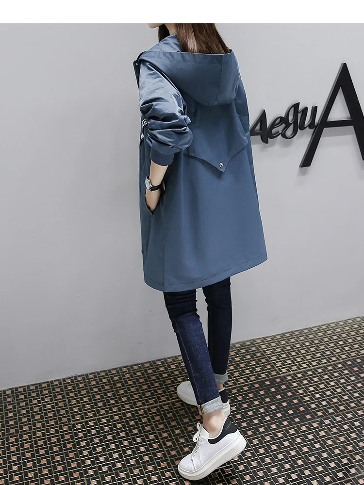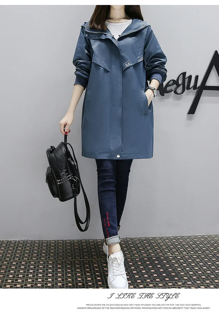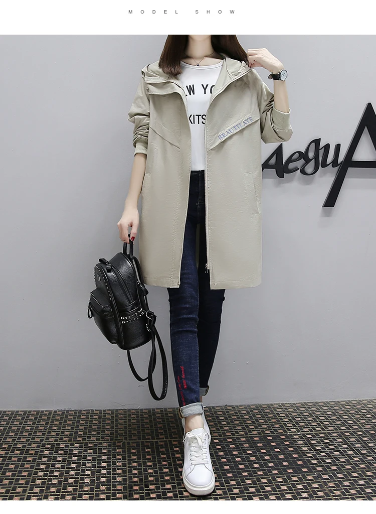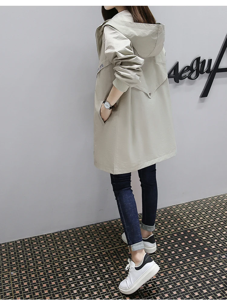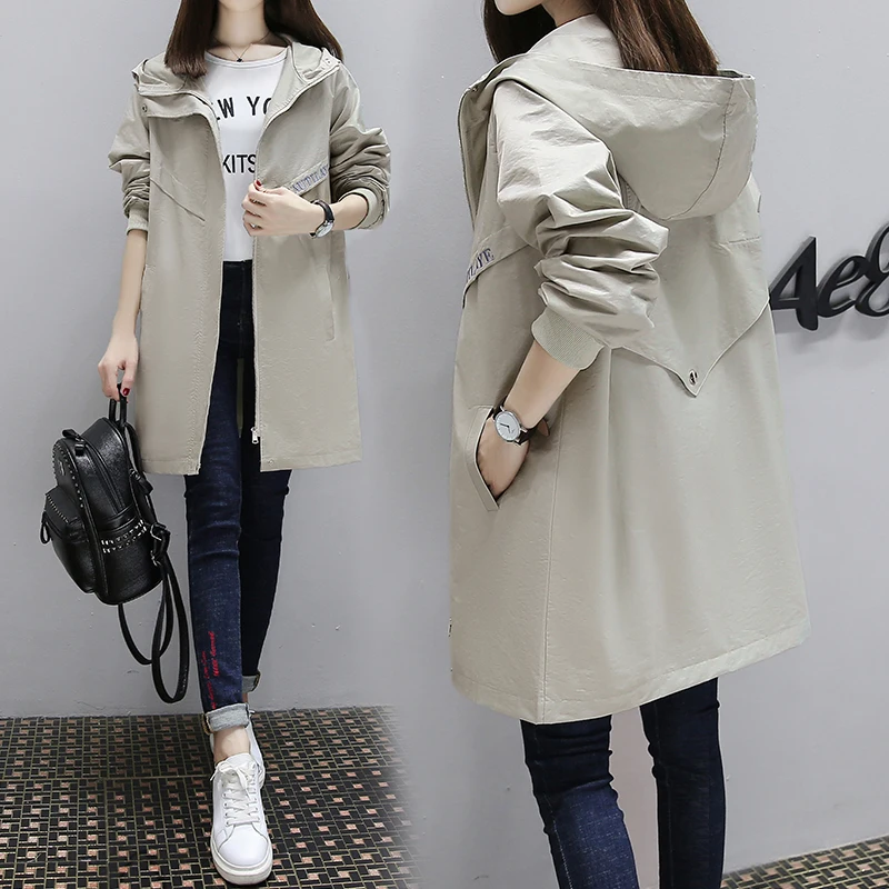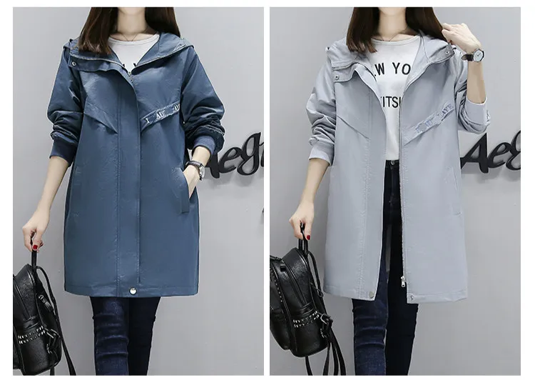 Плащ женский длинный с капюшоном, серого цвета, весна-осень, 2020