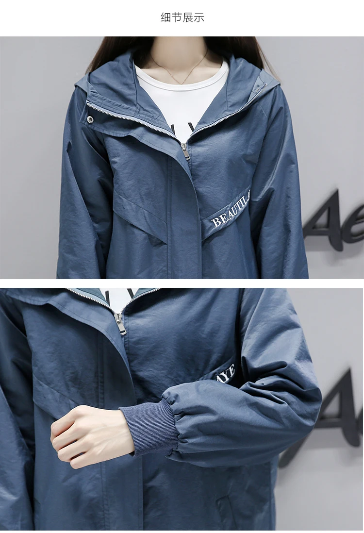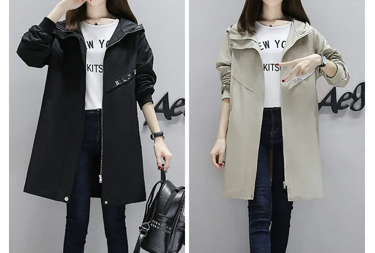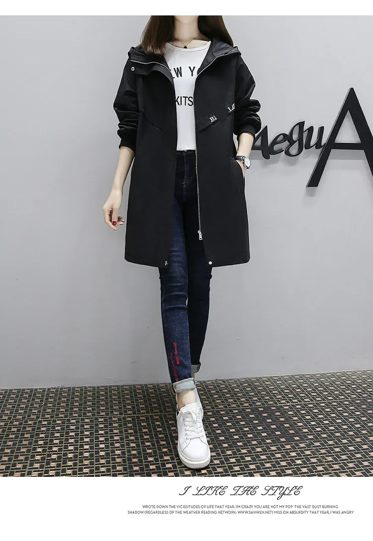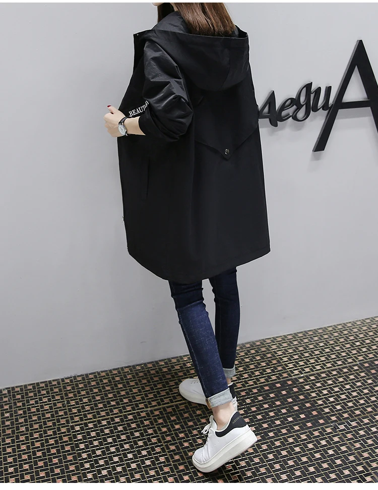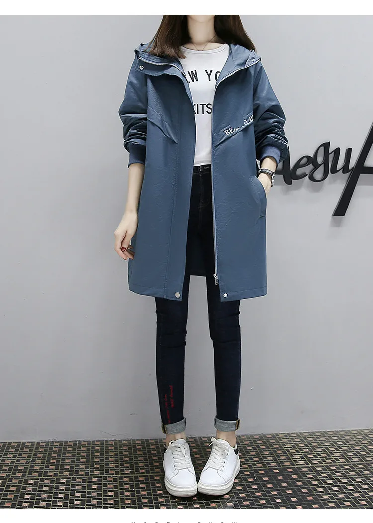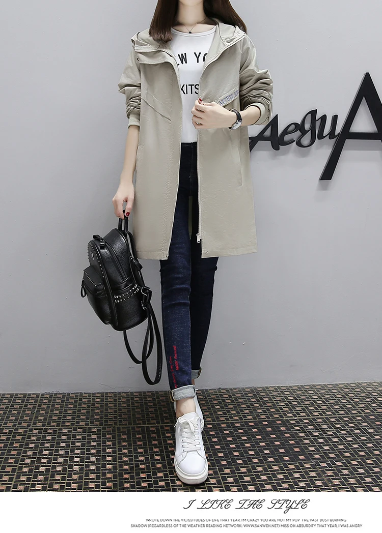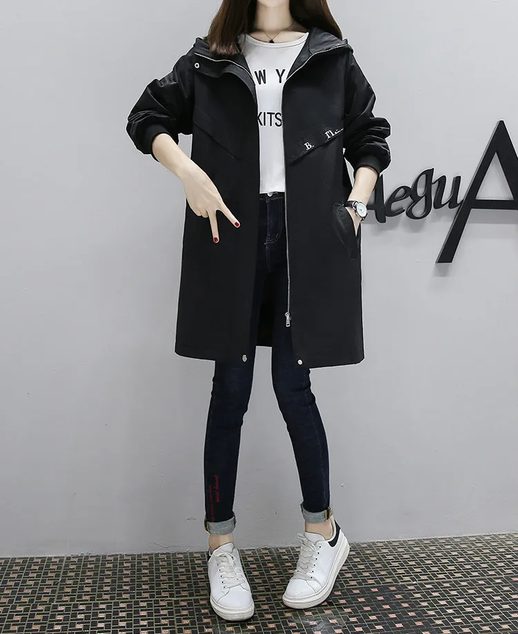 Плащ женский длинный с капюшоном, серого цвета, весна-осень, 2020