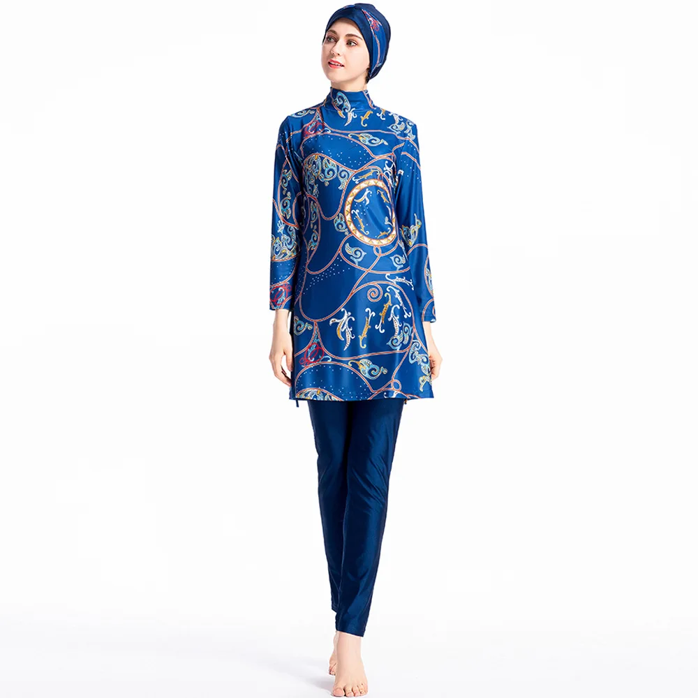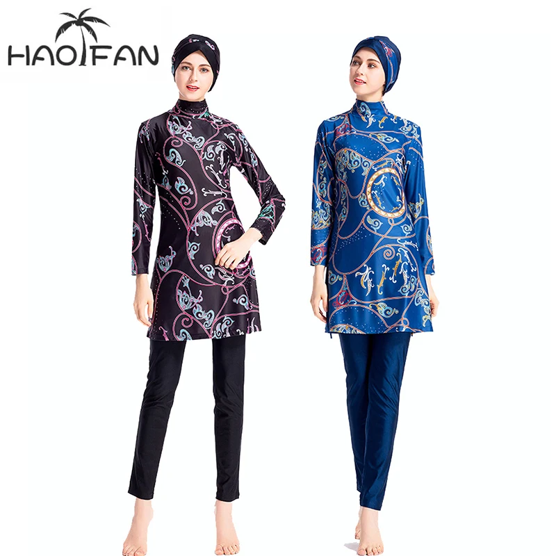 HAOFAN 2020 мусульманский купальный костюм Hasema без подушек, одежда для плавания для исламских женщин с принтом мусулмана, купальный костюм из 3 предметов, бикини, полный Чехол