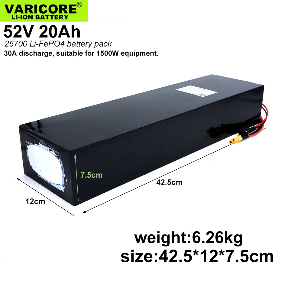 VariCore 52V 20Ah 16S4P 26700 Lifepo4 Батарея пакет 16s 20A Максима...