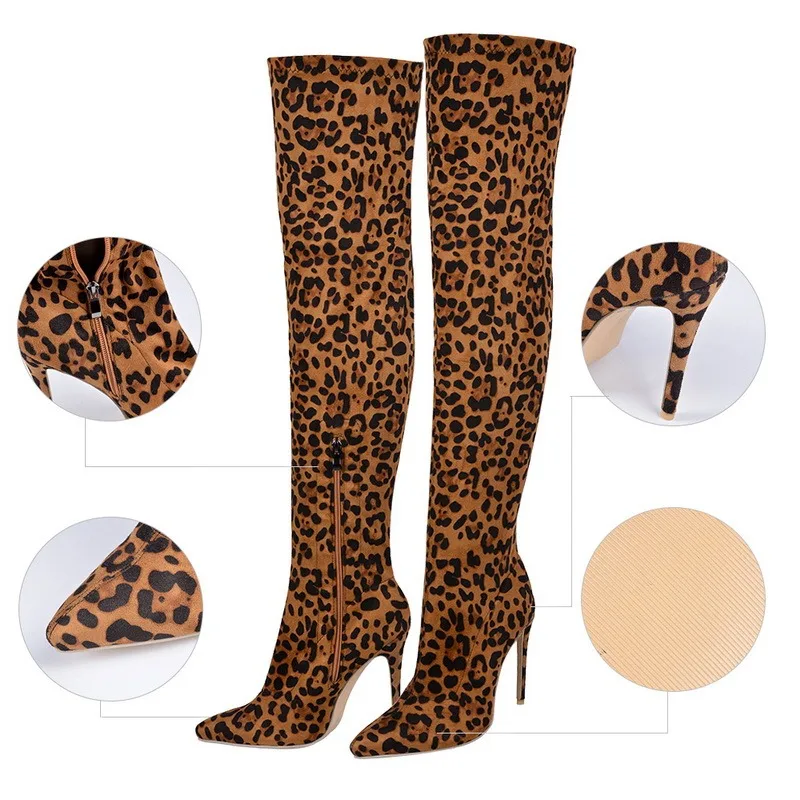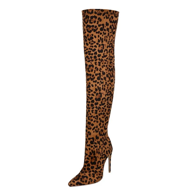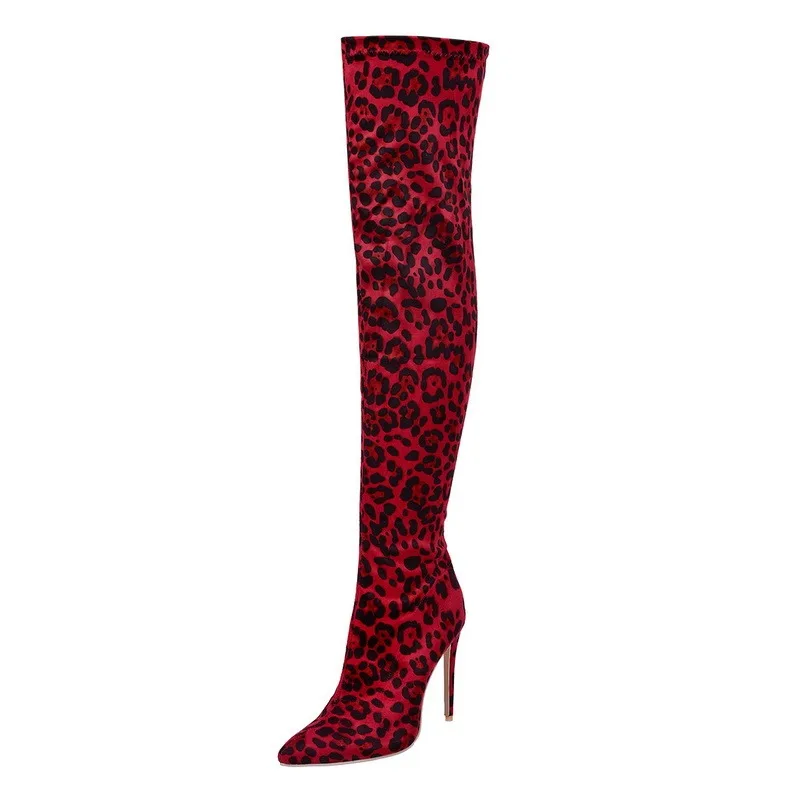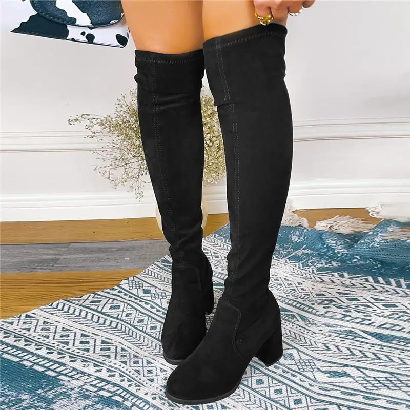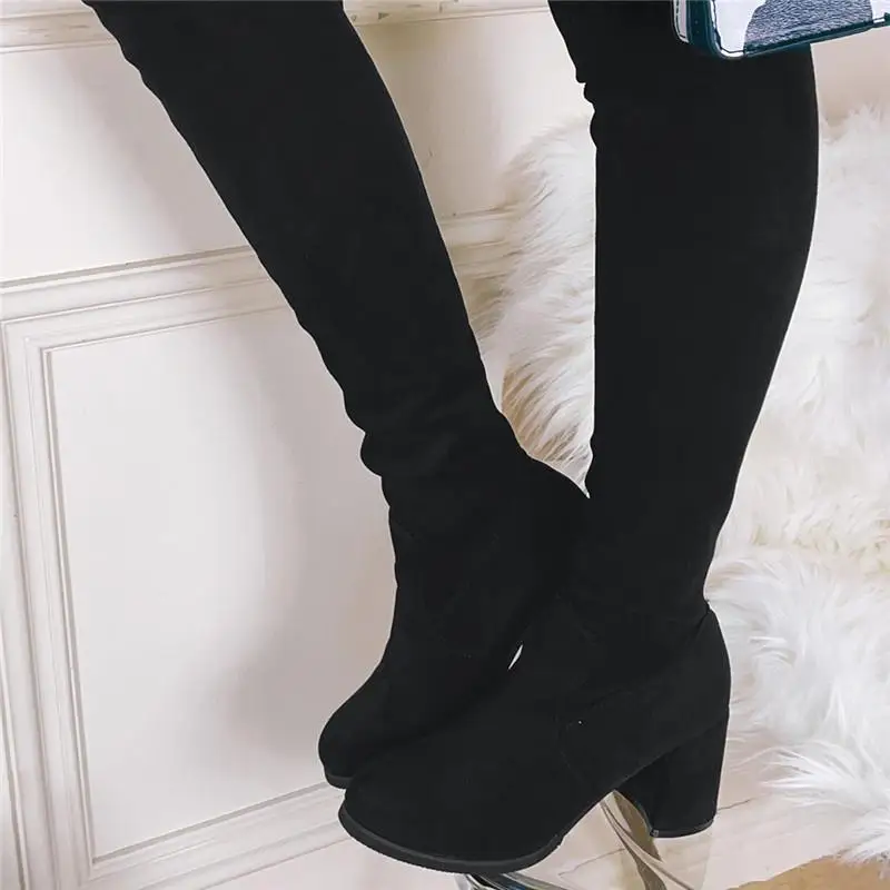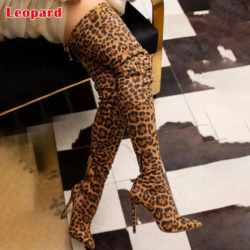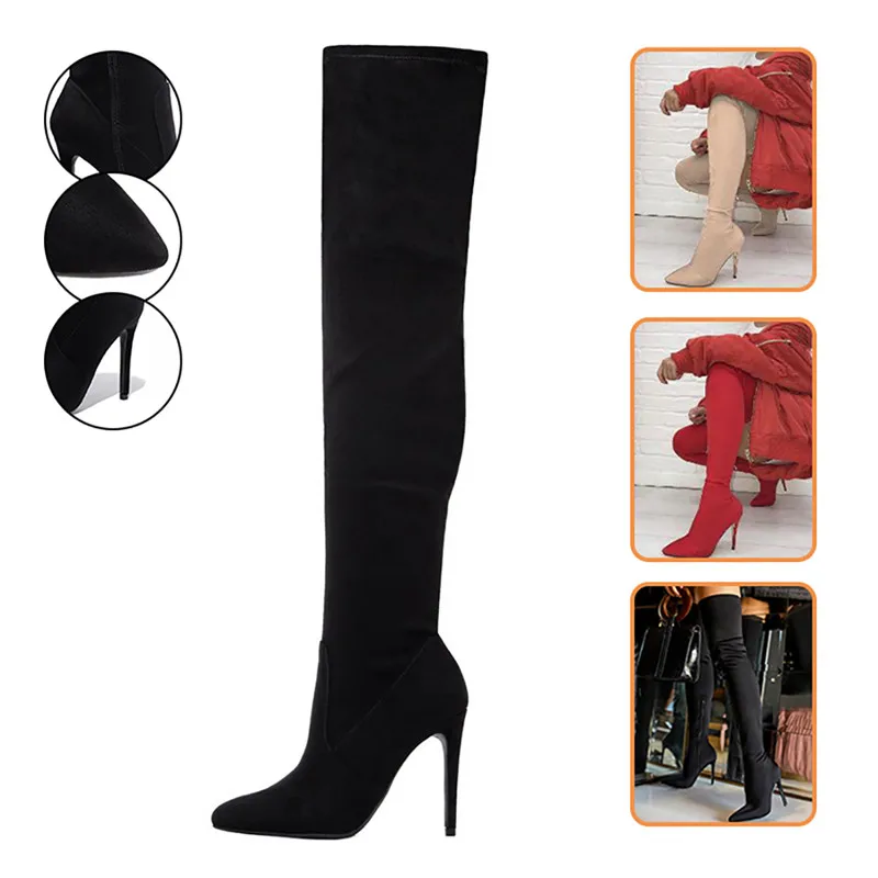 Женские сапоги выше колена, зимние сапоги из эластичной ткани, с острым носком, 2021, 35-43
