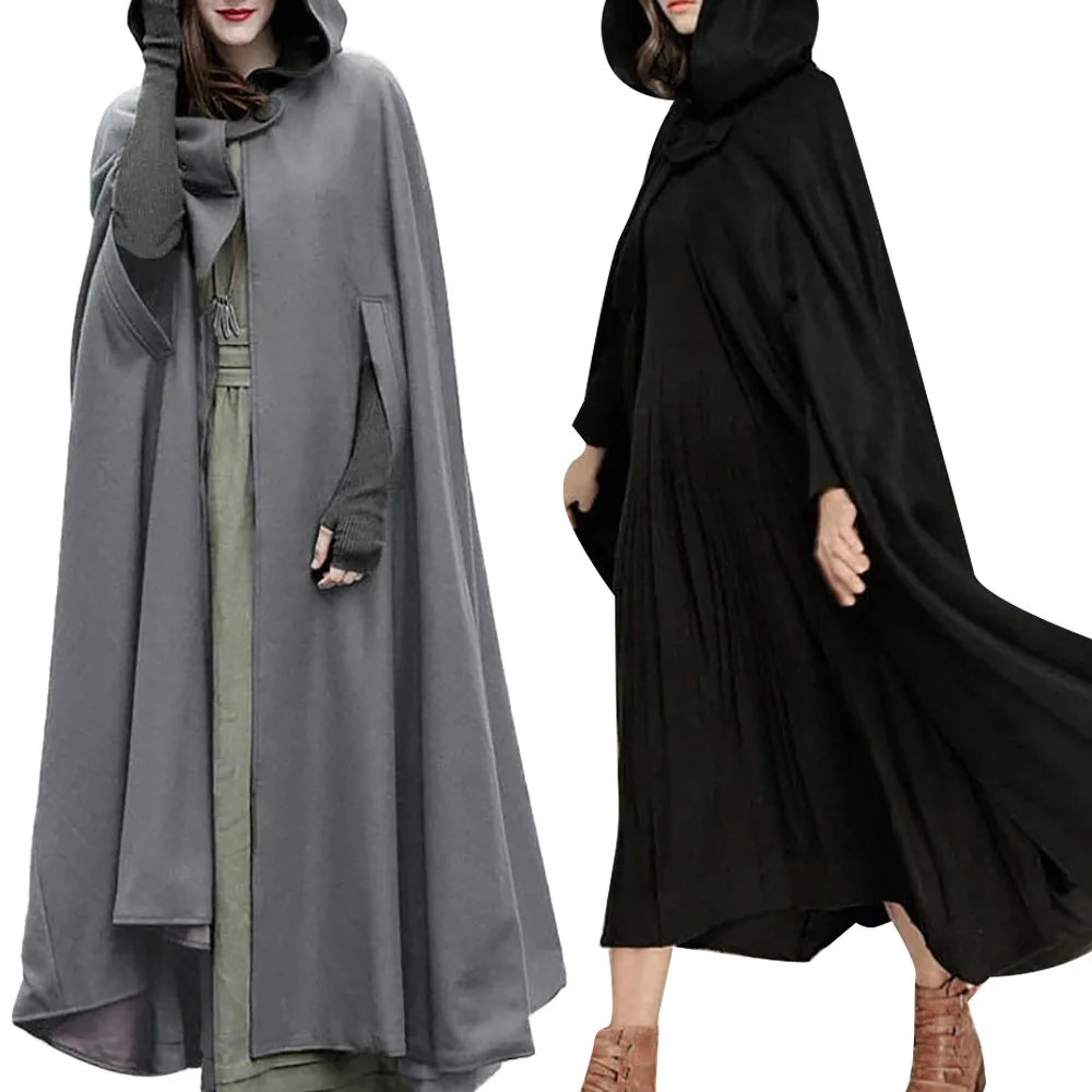 Зимний плащ с капюшоном, тренчкот для женщин Готическая накидка, открытый кардиган, куртка, накидка, пончо, большие размеры # g3