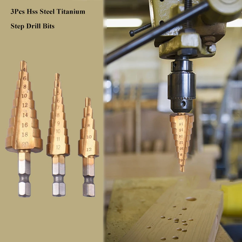 3 шт. Hss ступенчатое Коническое сверло с коническим конусом набор резцов с металлическим отверстием метрический 3-12 4-12 4-20 мм 14 дюйма металлический шестигранный конус с титановым покрытием