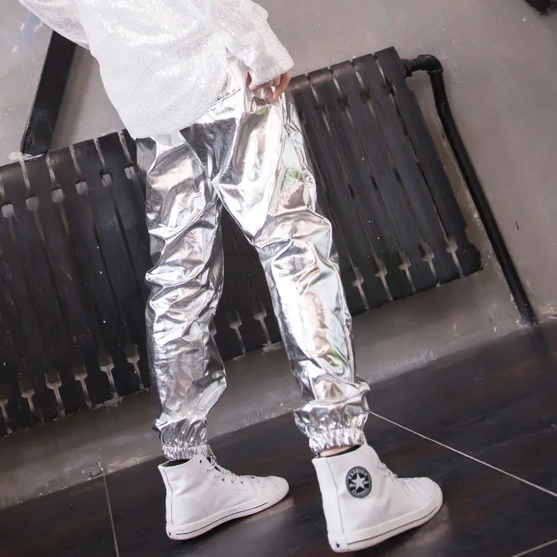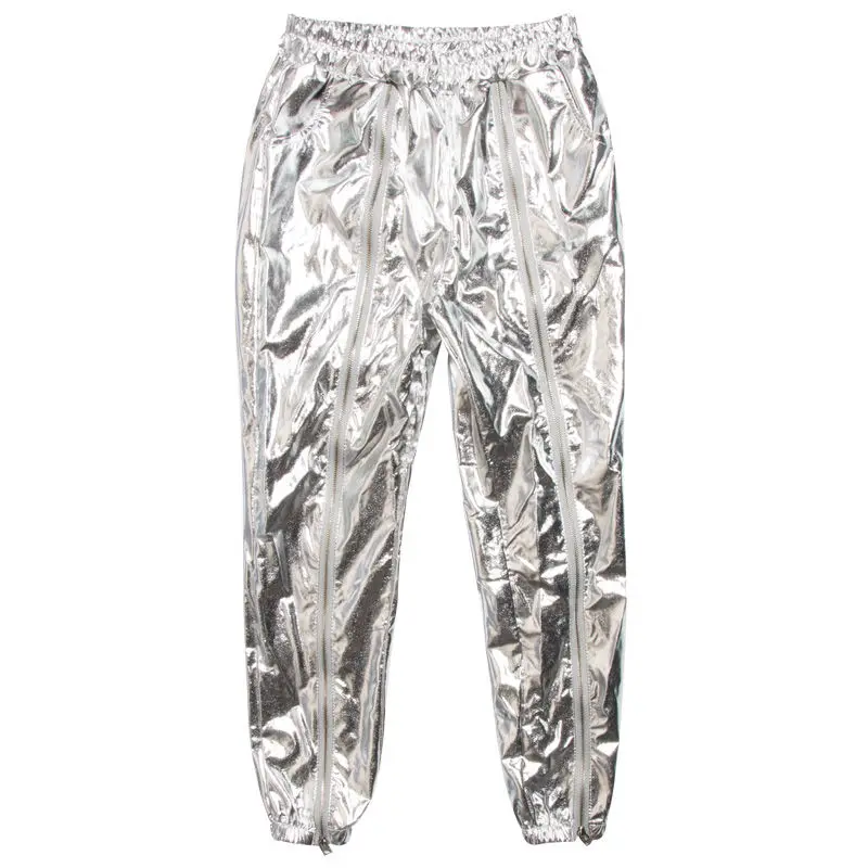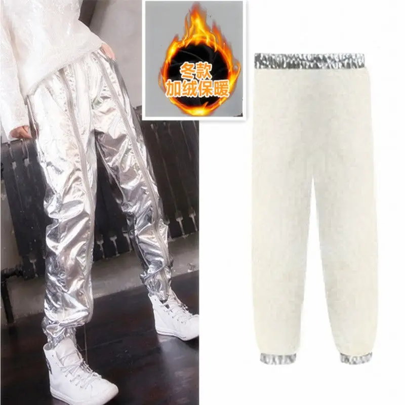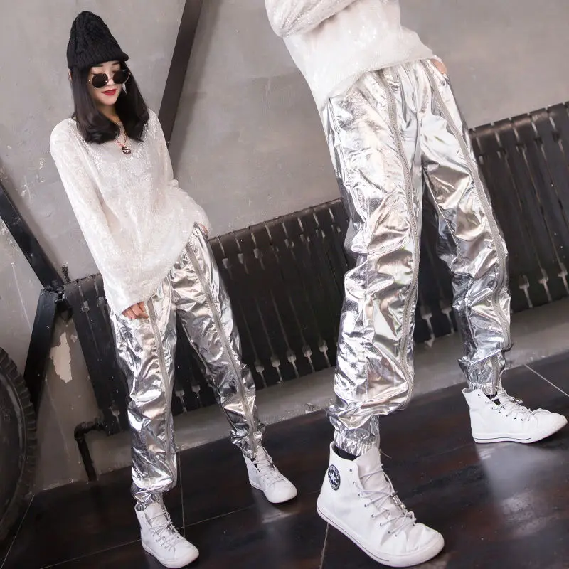 Брюки женские с блестками, Модные шаровары на молнии, серебристые Блестящие Брюки до щиколотки, повседневные зимние бархатные плотные брюки