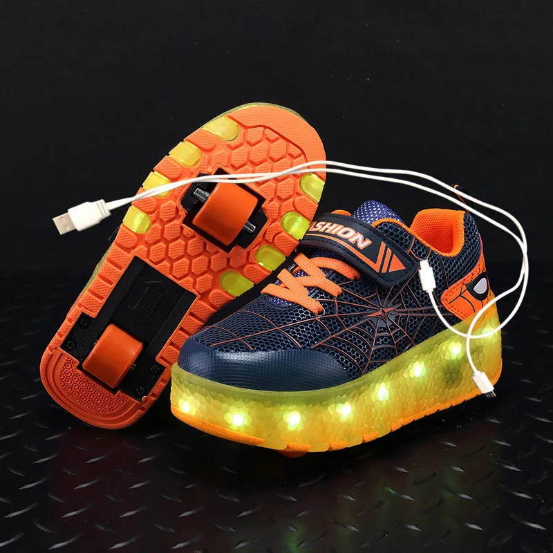 Двухколесные светящиеся кроссовки, черные и красные светодиодсветильник ссовки, обувь для роликов для детей, обувь с подсветильник кой для мальчиков и девочек, 28-43