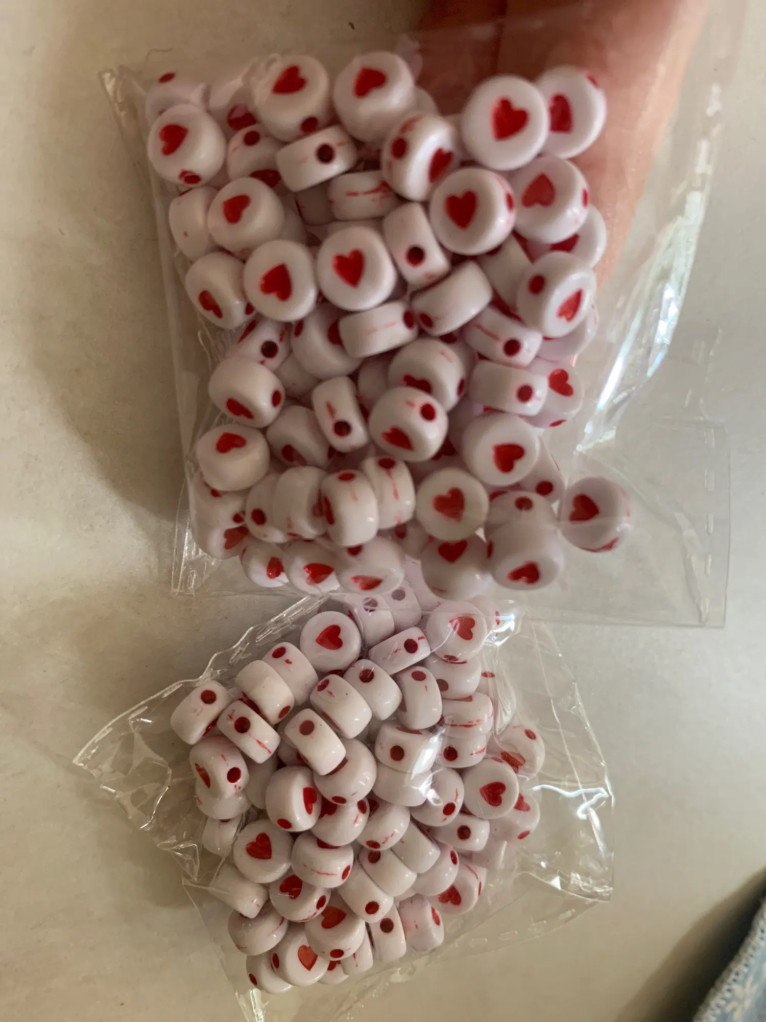 Заказывала белые бусины с цветными и красными сердечками. Цветные пришли отличные - чистые, без брака. Красные - просто ужас. По ребрам следы краски. Оценку очень не снижаю, потому что спор закрыли быстро и в мою пользу, ожидаю возврат денег за красные сердечки, эти бусины в мусор.