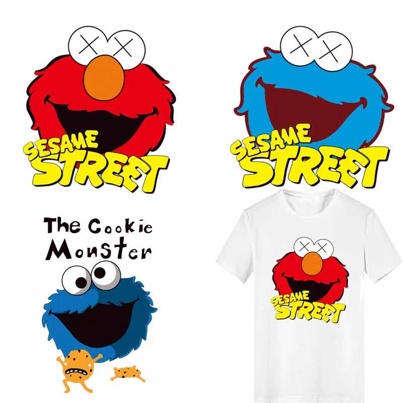 Нашивка с изображением аниме Улица Сезам, печенья, монстра, Элмо, Мультяшные термоклейкие Переводные нашивки для детской одежды, аппликация сделай сам, термопресс для футболок
