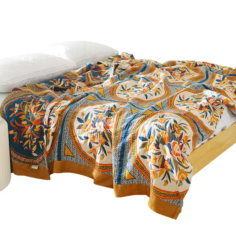 Летнее хлопковое четырехслойное газовое одеяло на кровать, покрывало для дивана, мягкое и удобное покрывало