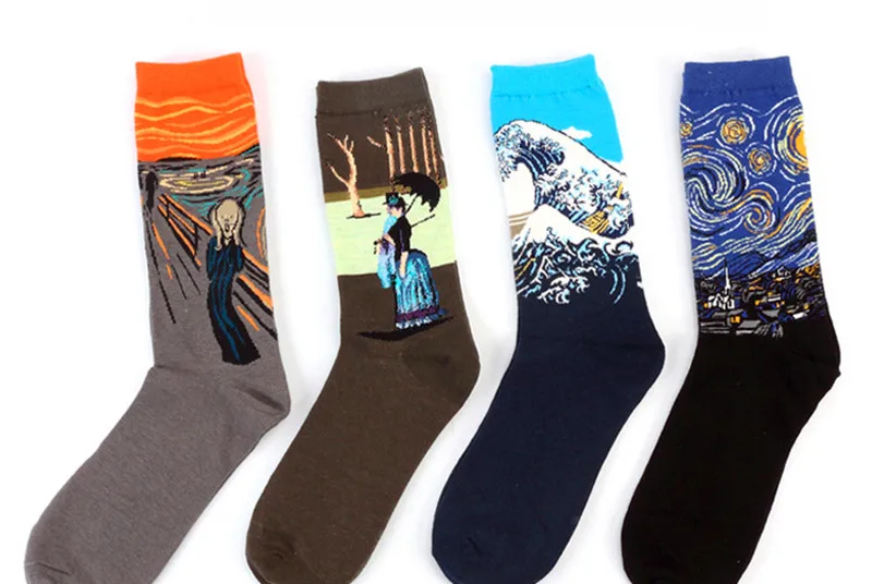 Носки женские осенне-зимние классические с изображением Ван Гога, 1 пара