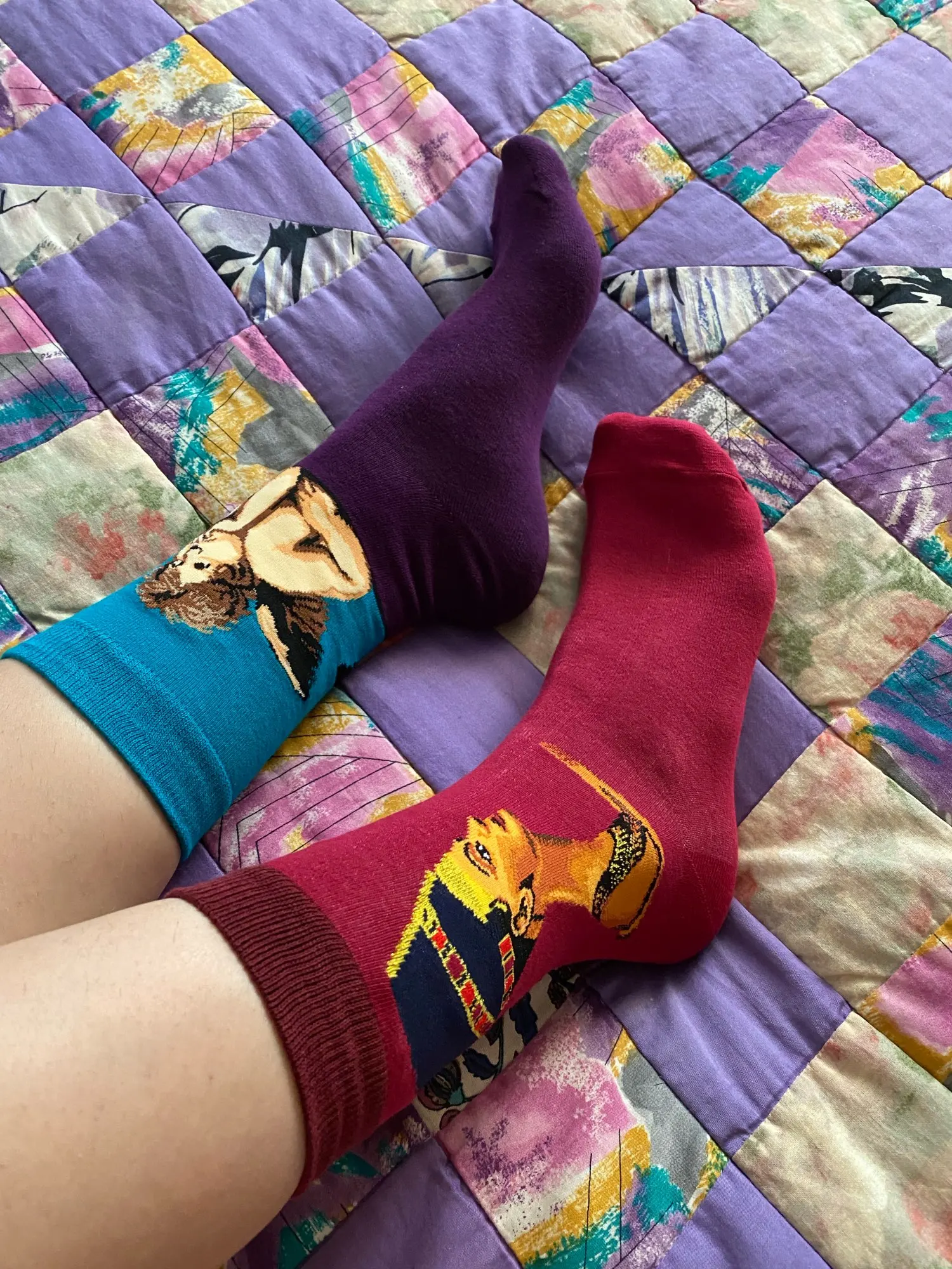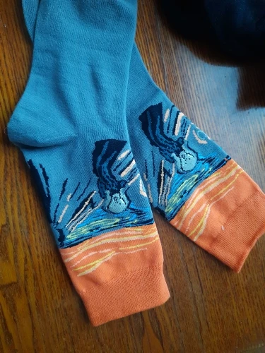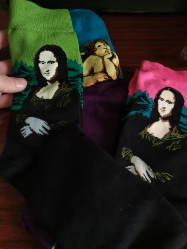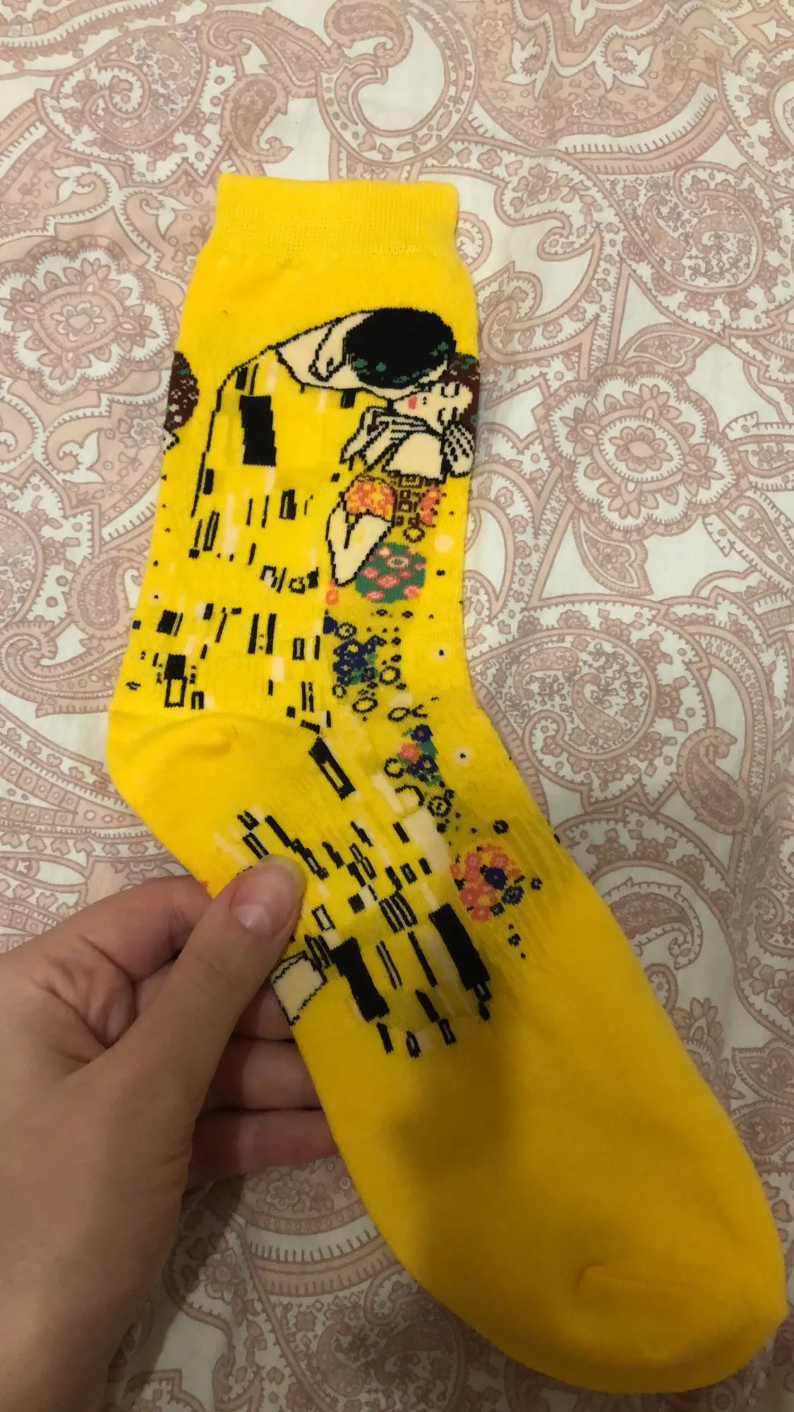 Носочками очень довольна - яркие, красивые, плотные. Качество лучше ожидаемого (не совсем пластиковые). Ещё не носила и не стирала (готовлюсь к тому, что чтобы они дольше оставались красивыми, нужно деликатно и вручную стирать). Носки довольно высокие. Отправили быстро, пришло примерно за месяц в Москву. Благодарю! Всем хорошего дня и настроения :)