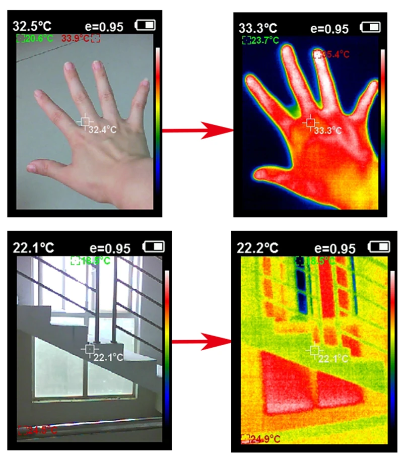 Характеристики:Дисплей экрана: 3,2 ''полноцветный экранРазрешение инфракрасного изображения: 220 × 160Видимый Разрешающая способность изображения: 0,3 миллионов пикселейТепловая чувствительность: 0,07 °Диапазон измерения температуры: -20 ~ 300 °(-4 ° ~ 572 °)Точность измерения: ± 2,5 ° или ± 2.5%Охват длины волны: 8-14 мкмУгол поля/короткое фокусное расстояние: 27 ° × 35 °/0,5 мИзлучательная способность: регулируется от 0,1 до 10,0Режим фокусировки: фиксированныйЧастота захвата изображения: 8 ГцВид опции: полный инфракрасный и полный обзор видимого изображения с 25% длиной шагаОбъем хранения: Встроенный 4GФормат изображения: JPGИсточник питания: Встроенный заряжаемый аккумулятор 18650USB: Micro USB2.0Автоматическое выключение: 5 mintues/20 минут/не выключается автоматическиРазмер: 90 × 105 × 223 ммВес: 289 гРабочая температура: от 0 до 50 °Температура хранения: от-40 до 80 °Влажность: <85RHПосылка включает в себя:1 x инфракрасный датчик температуры1 х кабель1 x Руководство пользователя1 x чехол для переноски1 x ремень для переноскиКартонная посылка-1 шт.