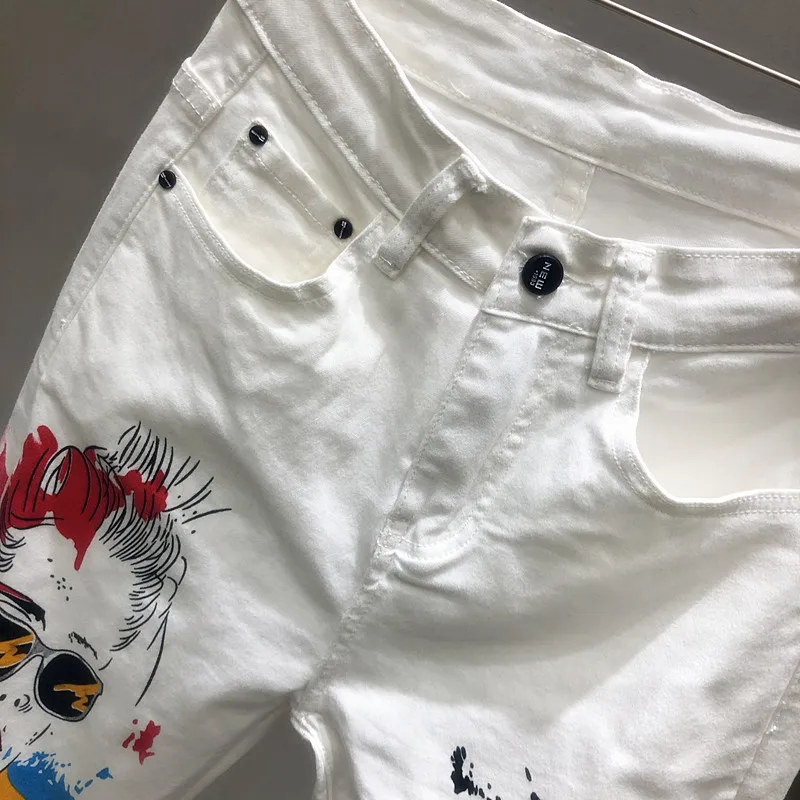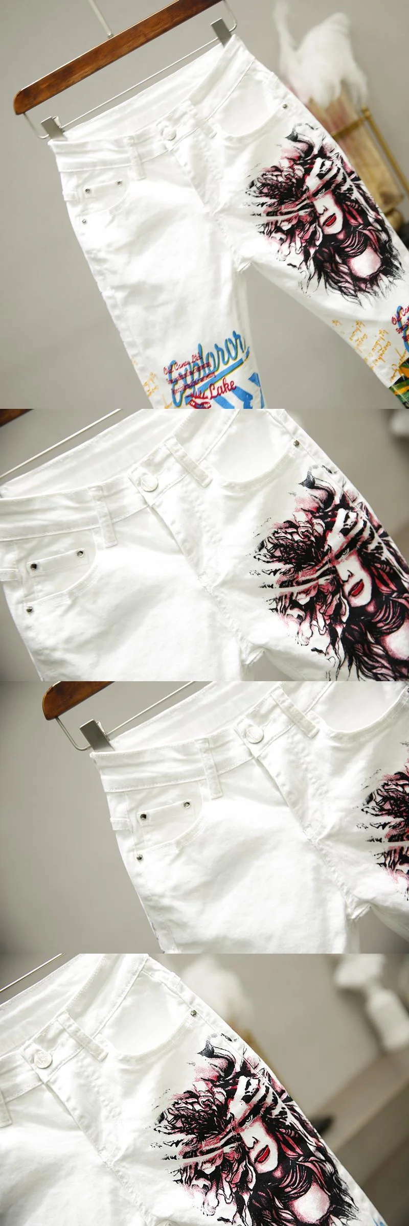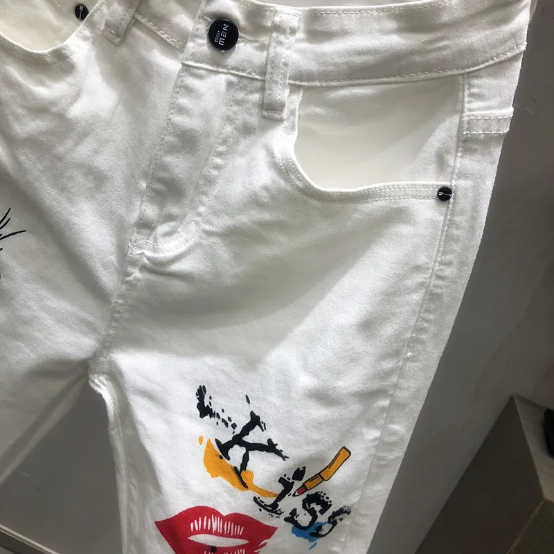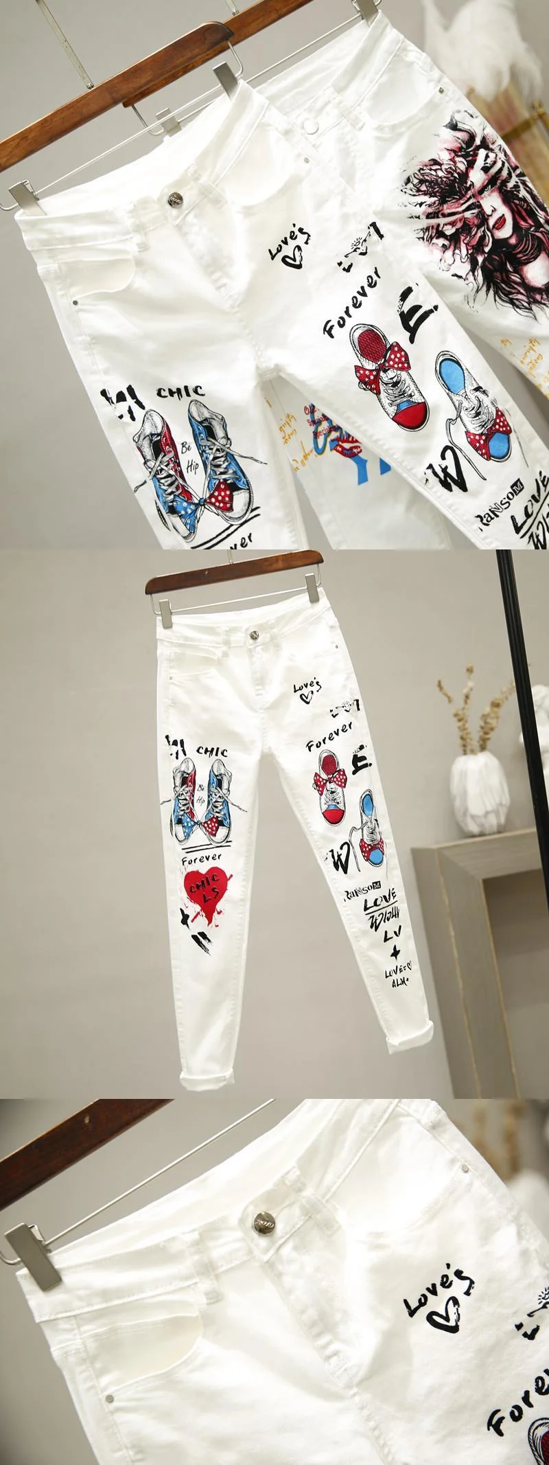 Джинсы женские с принтом, белые штаны с принтом, эластичные джинсы ...